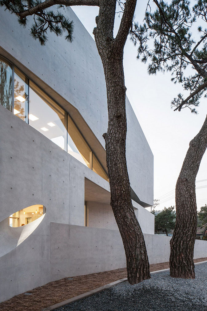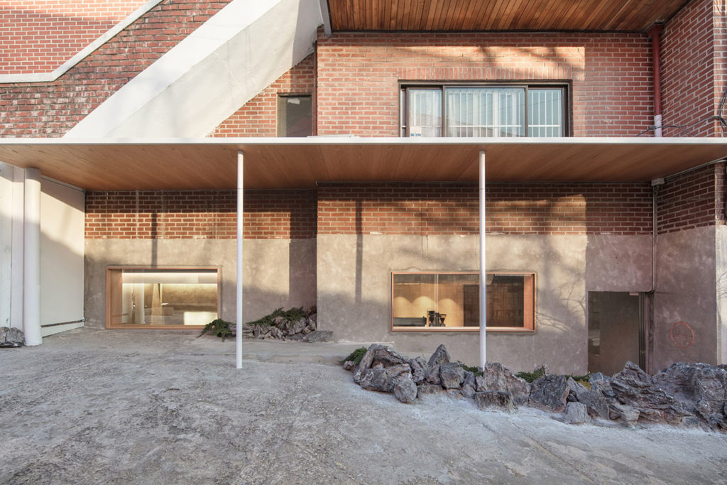 Sleek design is paired with traditional Korean elements at Cafe Oriente in Seoul’s creative Itaewon neighbourhood. Designed by local practice, Labotory, the cafe is partially submerged into the ground and features a combination of raw concrete, untreated wood, gravel, rock and a touch of greenery.