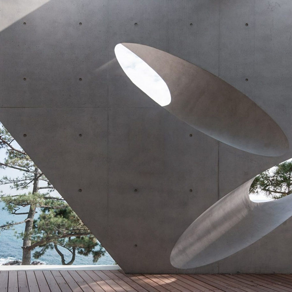 Sitting on the serene shores of South Korea’s second-largest city, Busan, Waveon Coffee maximises its sea views. The IDMM Architects-designed building towers above the sandy beach below. Cafe-goers can take in the sights or admire the architecture from its three levels, including a rooftop deck.