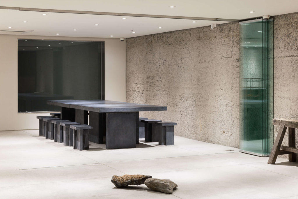 Stark concrete and glass interiors reign supreme at Seoul’s Etcetera Cafe. Local designer Jeonghwa Seo created furniture and lighting for the coffee shop which has rough sections of concrete dotted about. Guests can sit on an indoor/outdoor bench which appears to cut through glass windows framing the brutalist cafe.