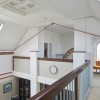 The church’s full-height sanctuary has been left exposed and turned into an open-plan living room and kitchen, with beams and trusses painted white. The church’s original stained glass and wrought-iron details have been retained and a heated parquet floor has been fitted across the ground floor space.