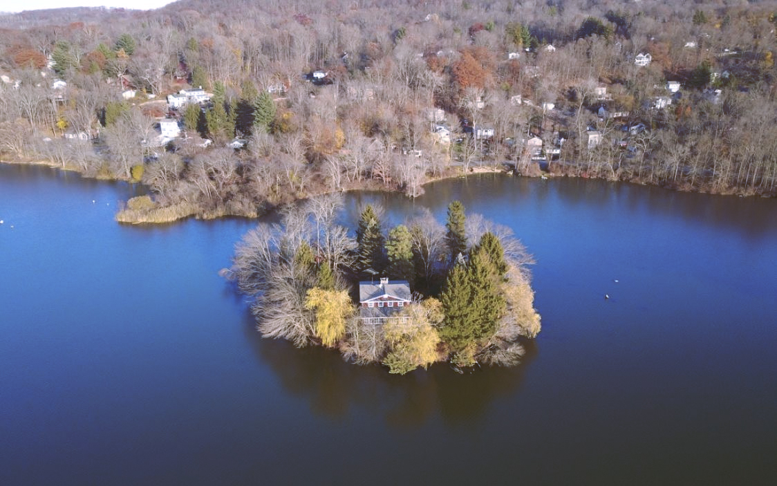 The building that stands on Columbia Island was built as a radio broadcast station in the 1940s and was bought by developer Al Sutton in 2007 who converted it into an eco-home, with solar panels for electricity. Its hefty price tag reflects its desirable location – Manhattan is a 30-minute boat ride away.