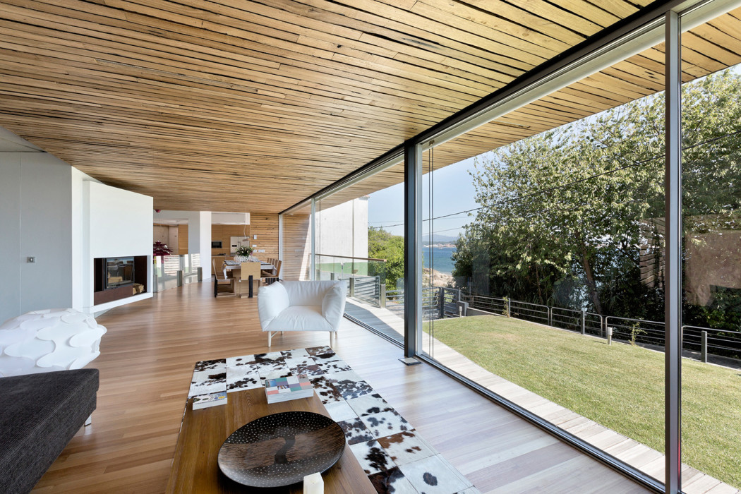 Dezanove House is a sprawling holiday villa on the Arousa estuary built by architect Iñaki Leite, using recycled bateas from the local mussels industry.