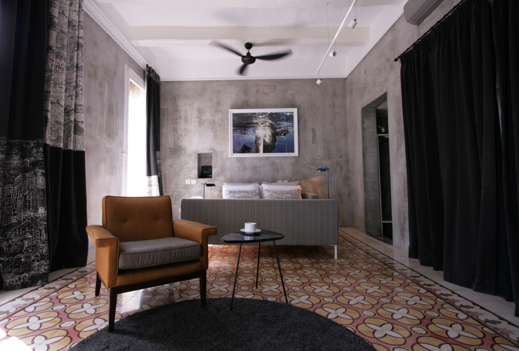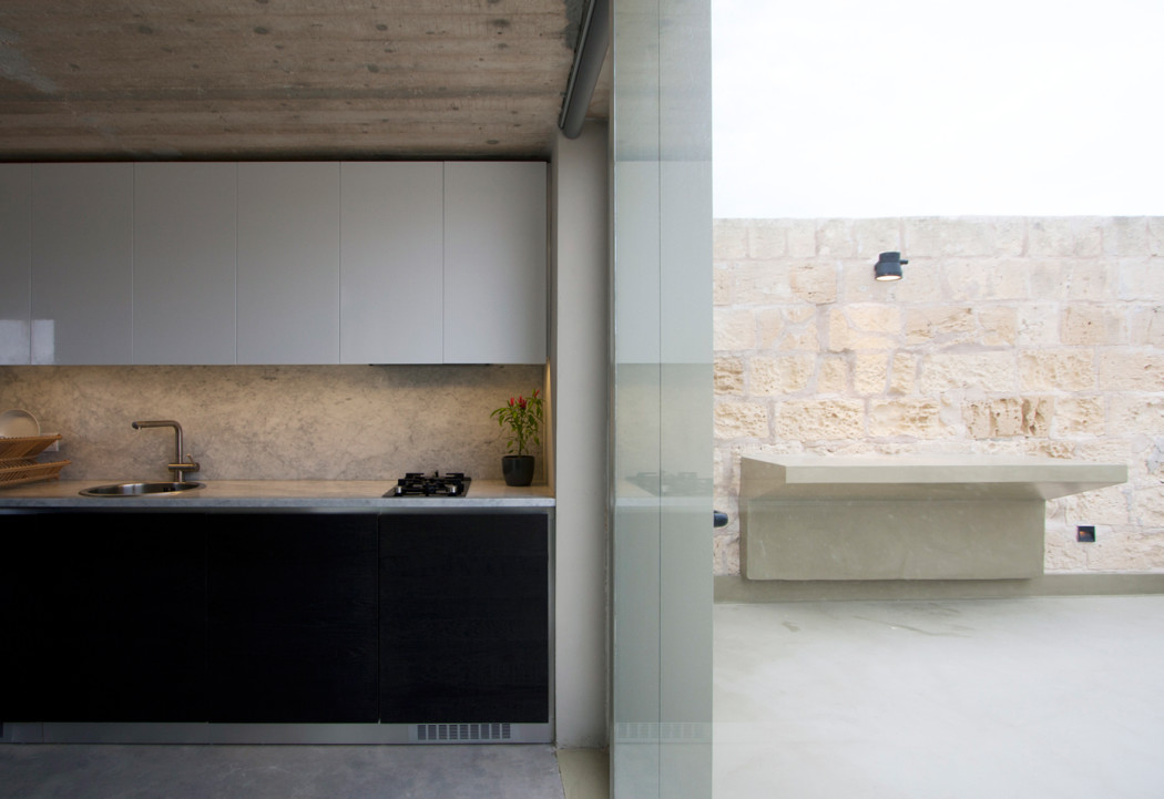 The architect owner of this studio apartment restored the 18th century building in 2013, mixing raw concrete finishes with Maltese tiling, local stone and vintage furniture.
