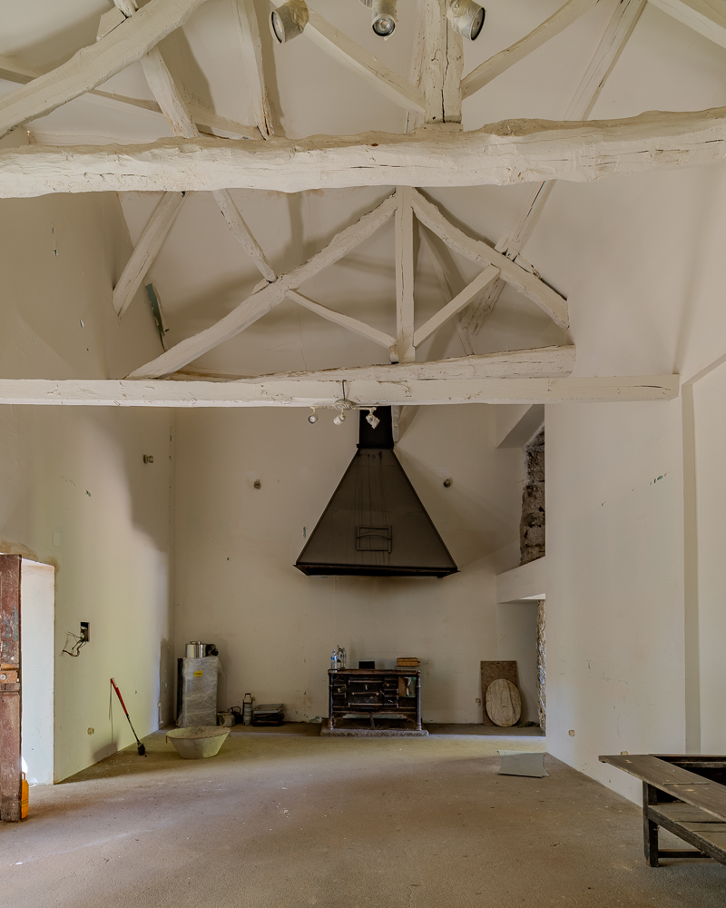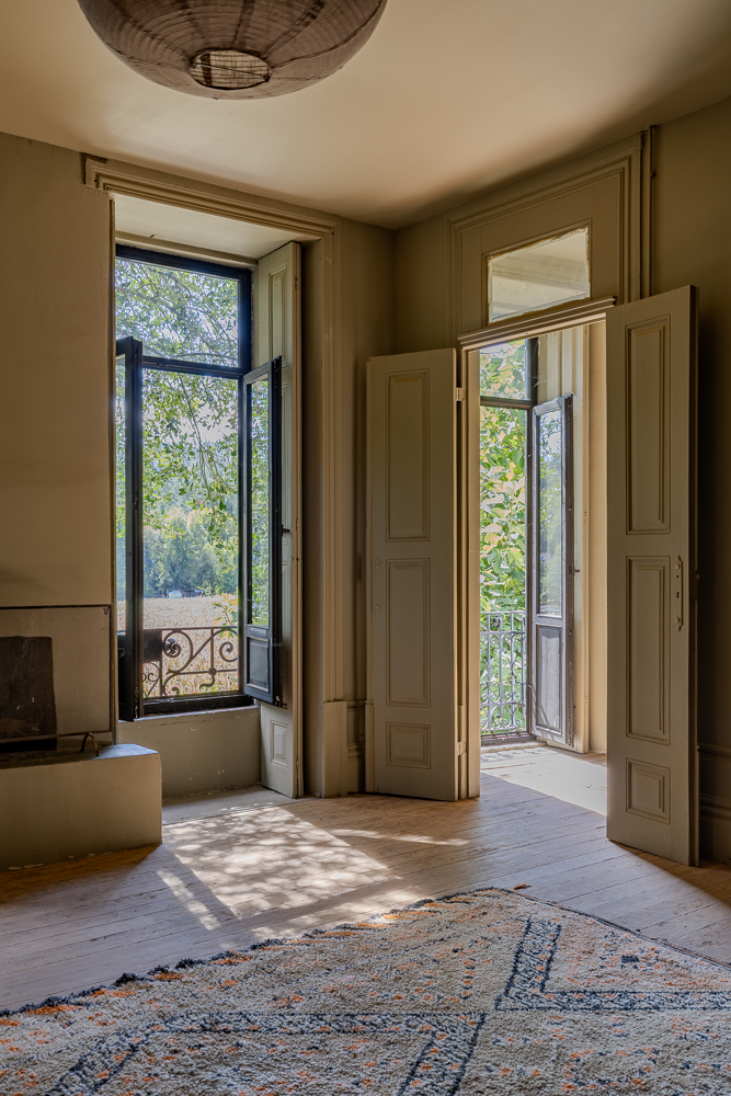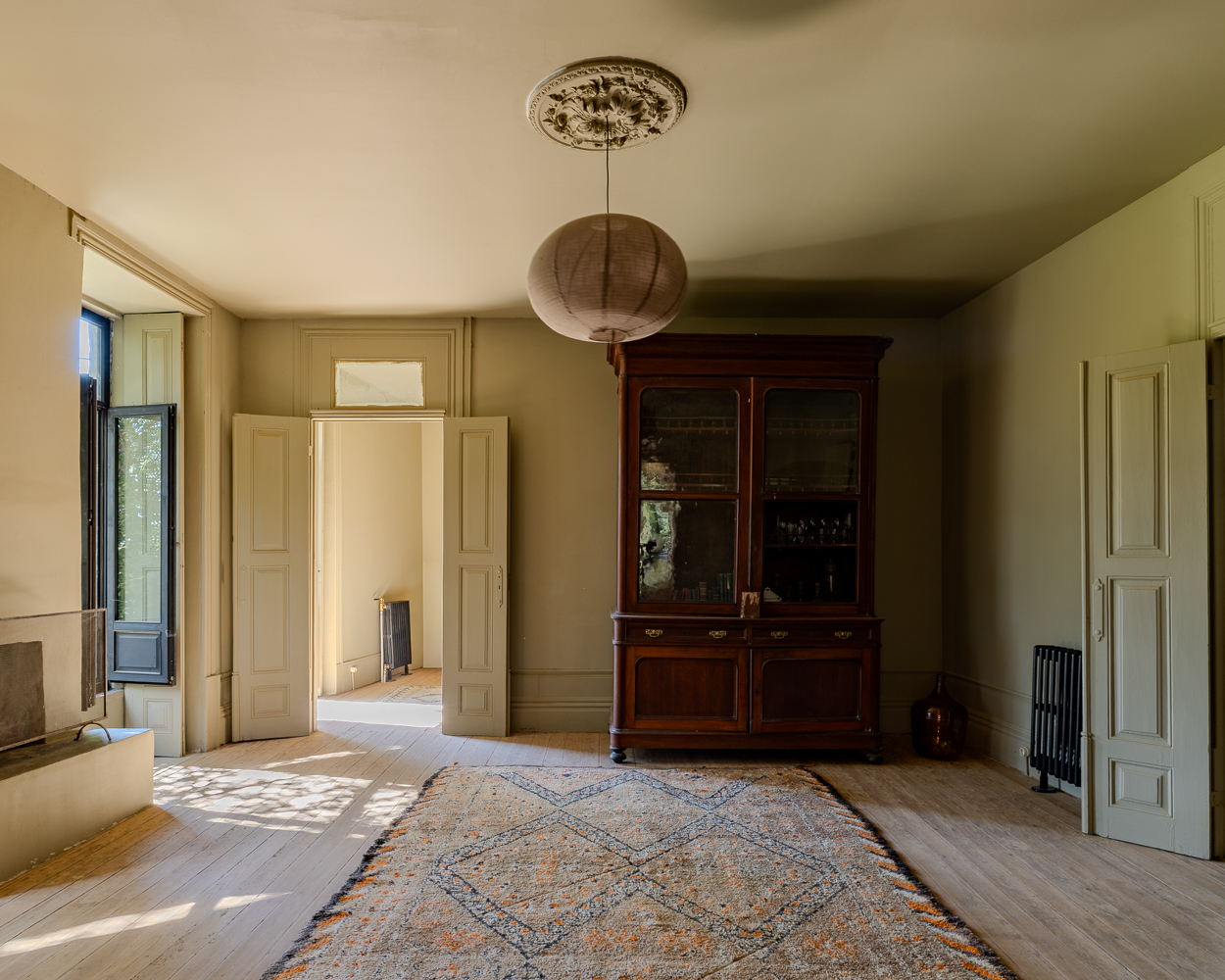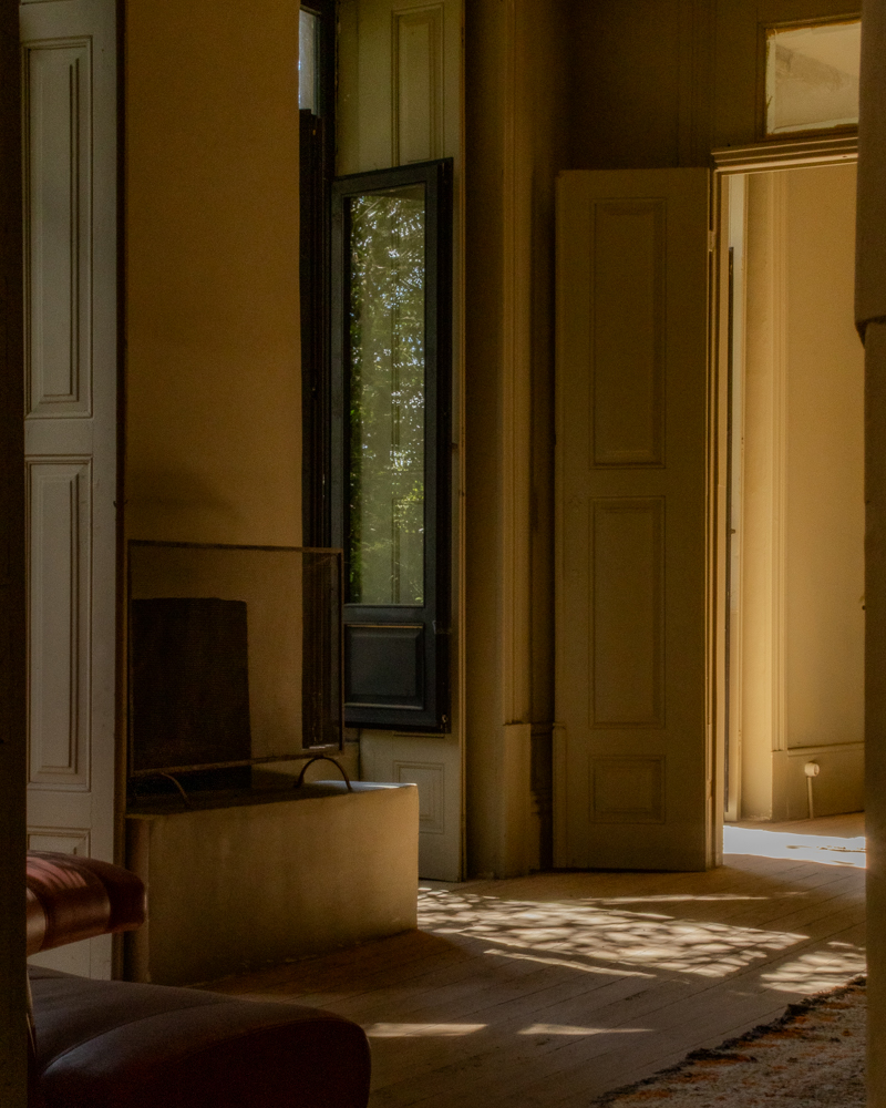 Set on a 2,095sqm garden, the property includes a pool, terrace and wine cellar. Mature trees line the grounds, offering shade and a sense of permanence. Light from the southeast softens the solid stone architecture and connects the house to its rural surroundings.