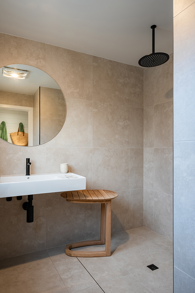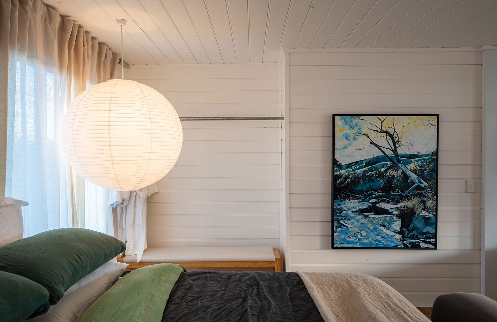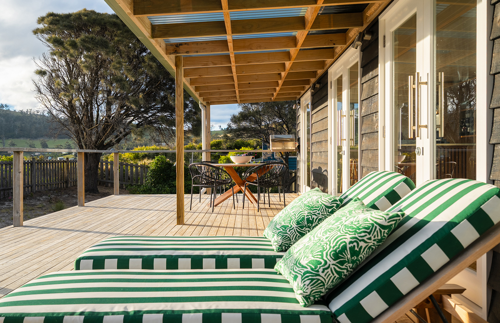The revamp brings the structure into conversation with its surroundings. Timber floors run through the open-plan living space, and sliding doors widen it toward an expansive deck and the outlook beyond. A renewed kitchen and bathroom continue the same pared-back palette, using considered lines and quality materials to keep the architecture front and centre. Behind the scenes, a full electrical upgrade and integrated water filtration system support daily living.