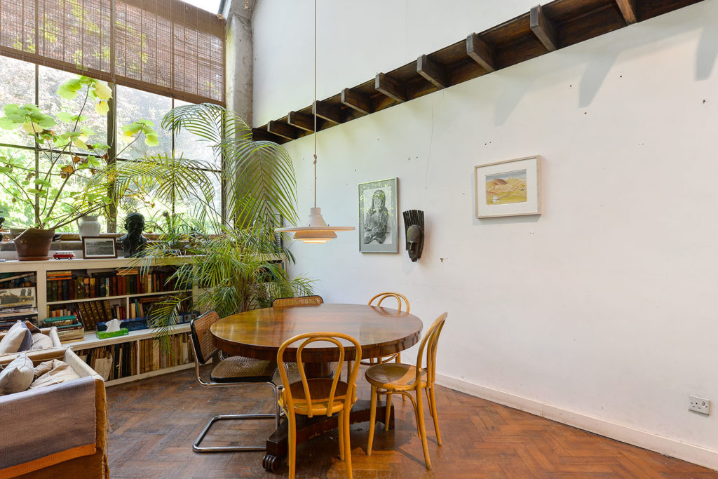 The three-bedroom London property – now on the market via Savills – was built by Scottish architect Thomas Tait for the artist and is Grade II listed. At its heart is a soaring ‘living hall’ in what was the former artist’s studio space, which is capped by Crittall glass and currently serves as a vast living room.