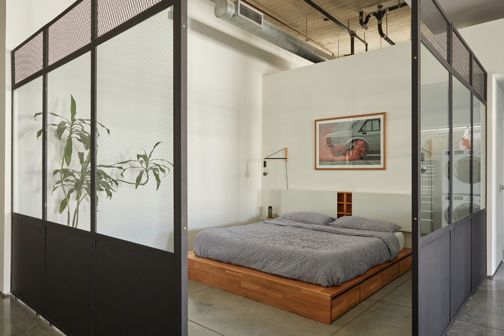 Flooded with sunlight from clerestory and sash windows on two sides, and with white stucco walls and bare polished concrete flooring, the one-bedroom Long Beach home sits within a building designed by Meyer and Holler in the 1920s. The structure underwent adaptive reuse and was renamed Walker Lofts in 2002.