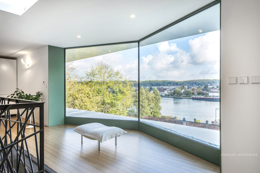 Views of the Seine are celebrated across this riverside home in the French town of Thomery.