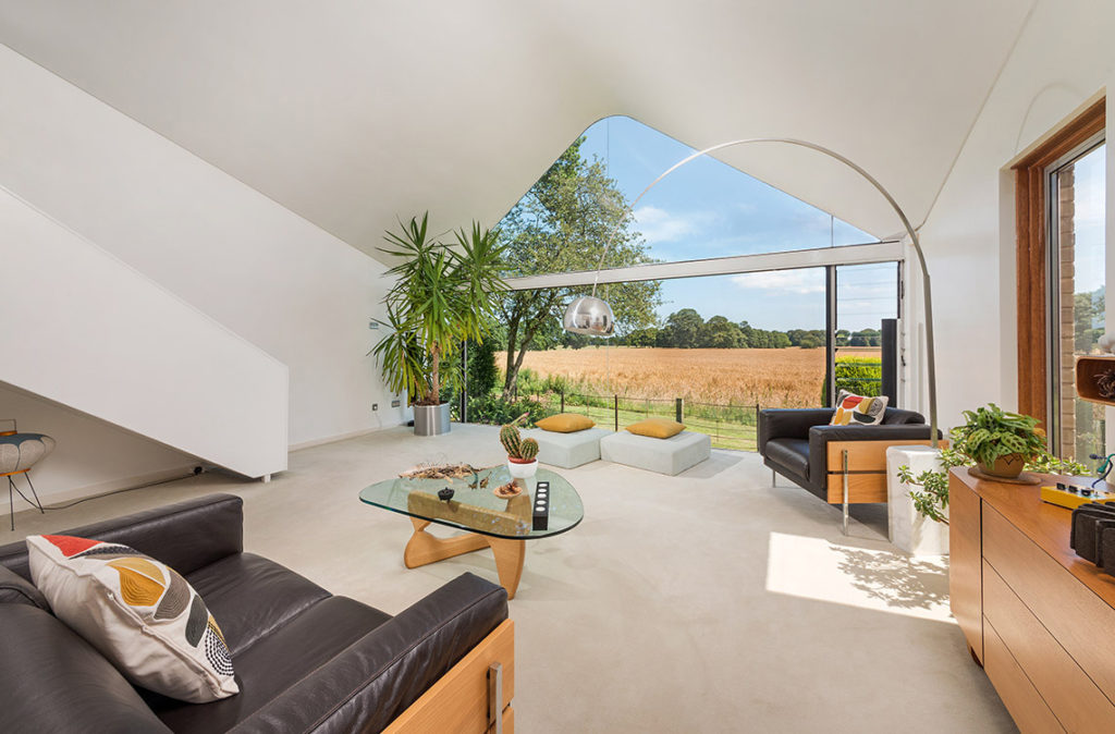Trees, as the five-bedroom dwelling is known, is based on a rectilinear plan, and frames views over the surrounding fields of Woolsington through a glazed end. It’s on the market with Sanderson Young for £850,000 and has been carefully preserved, having featured in numerous publications in the last 50 years for its unorthodox design.