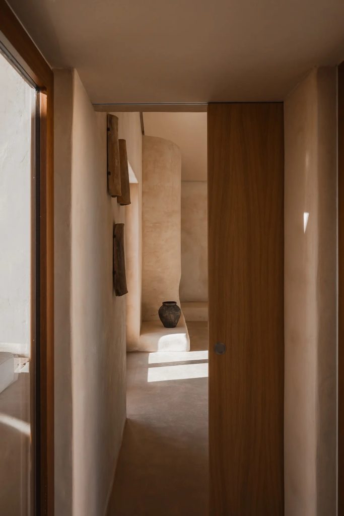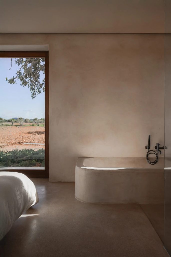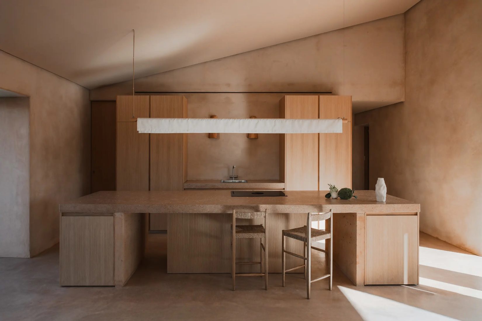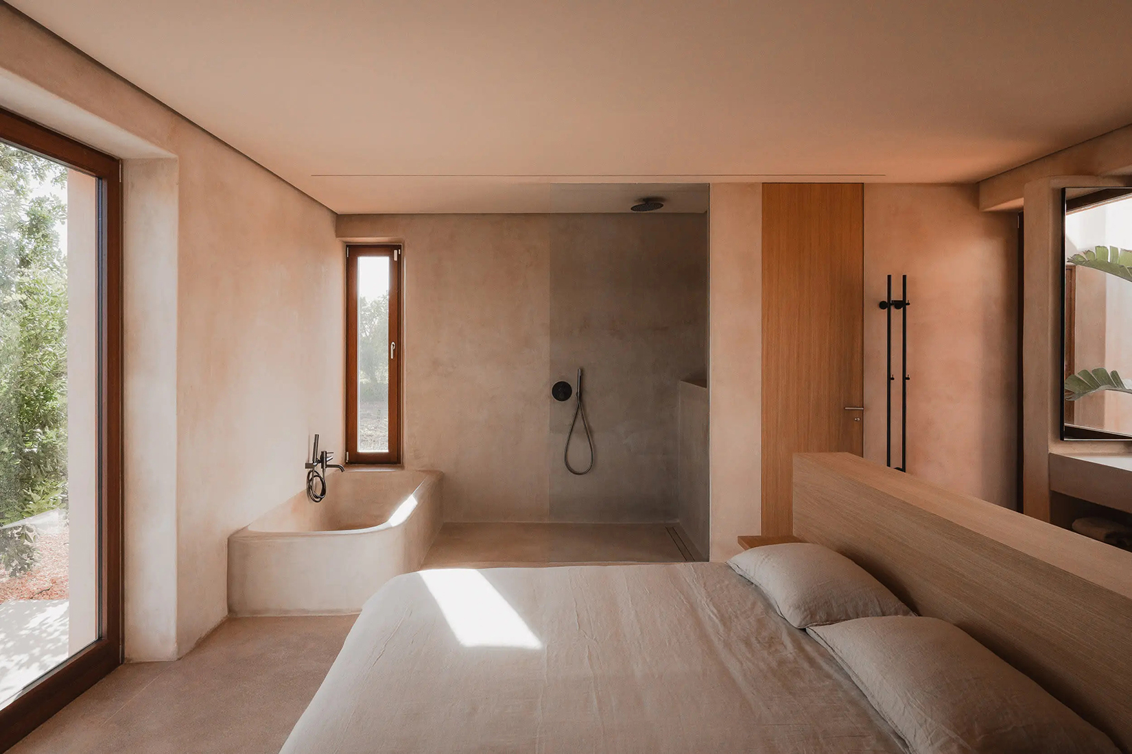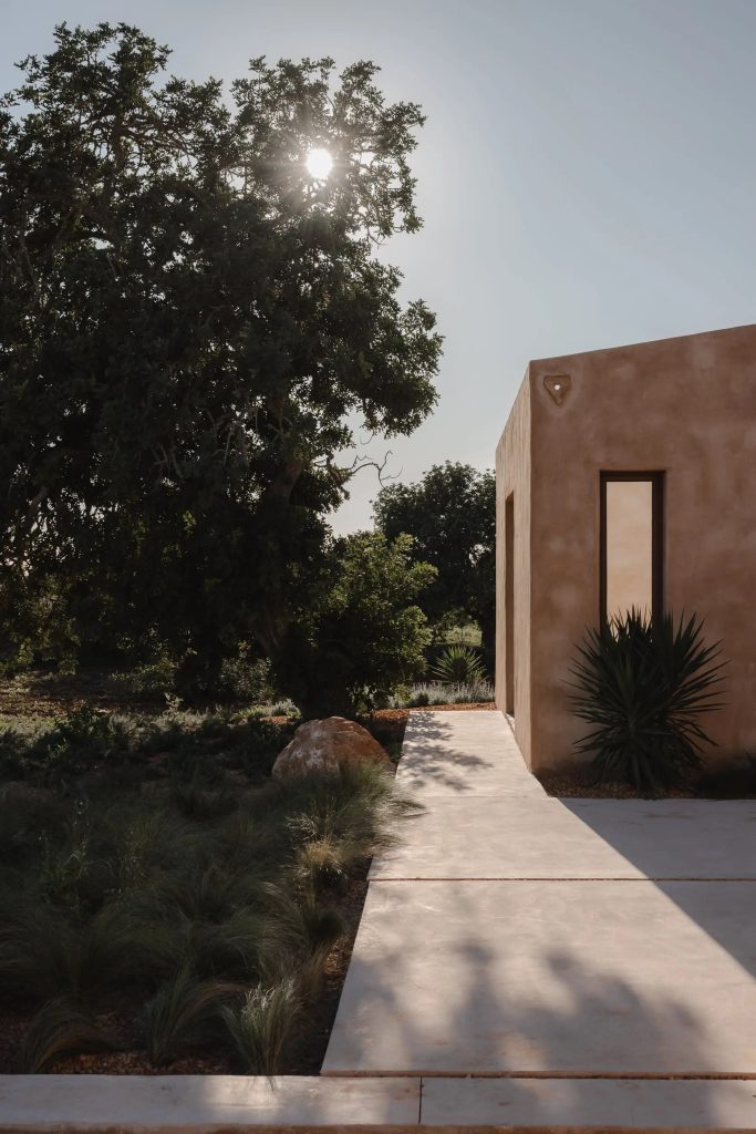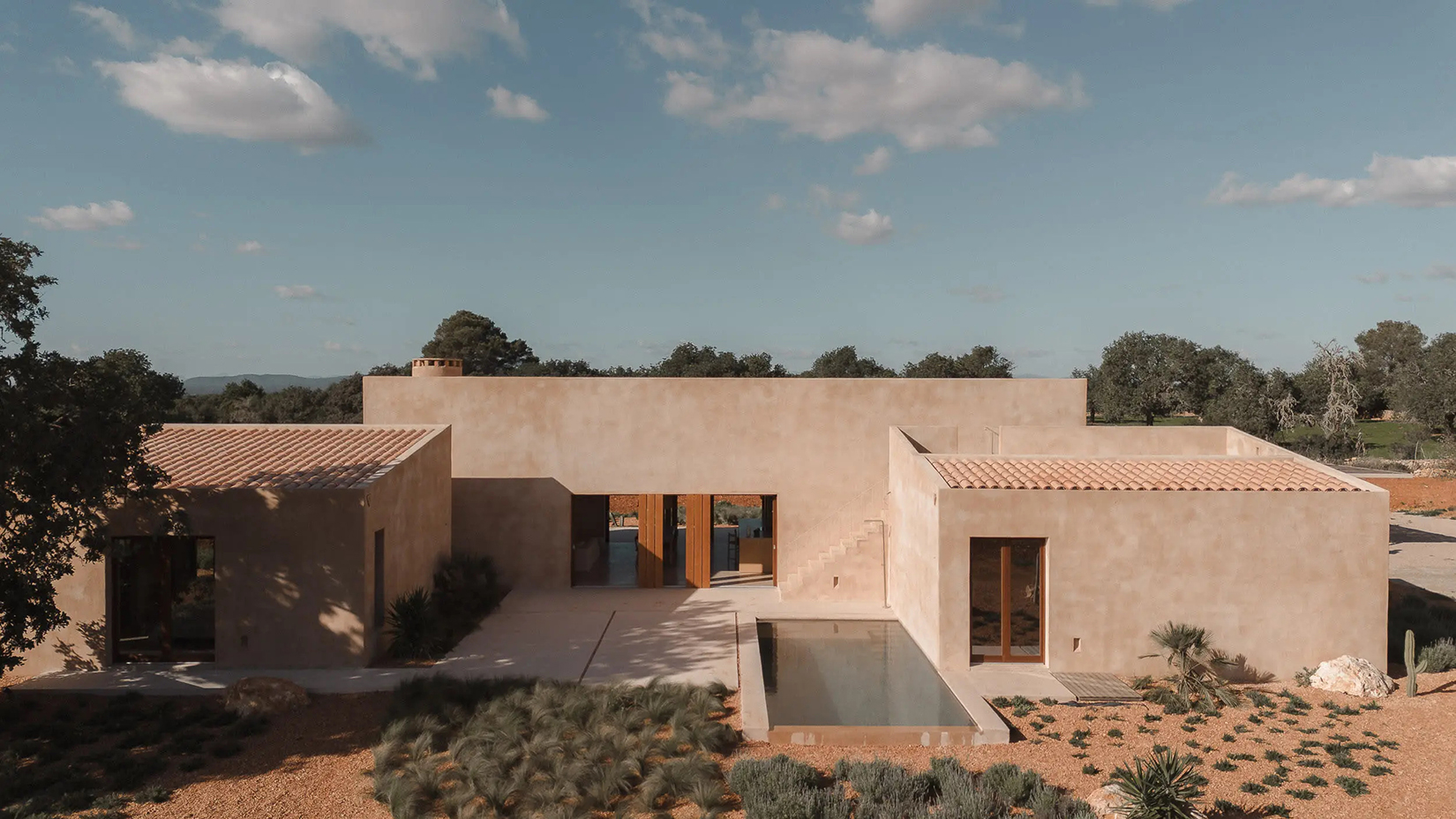 From a distance, this contemporary finca in Cas Concos appears as an arrangement of low cubic forms, its earth-toned render calibrated to the colour of the soil. Designed by Munarq and completed in 2025, the architecture avoids overt gestures, instead relying on proportion, shadow and surface to establish its presence within the Mallorcan landscape. Terraces and planted paths thread between volumes, mediating the transition from open countryside to enclosed living space.
