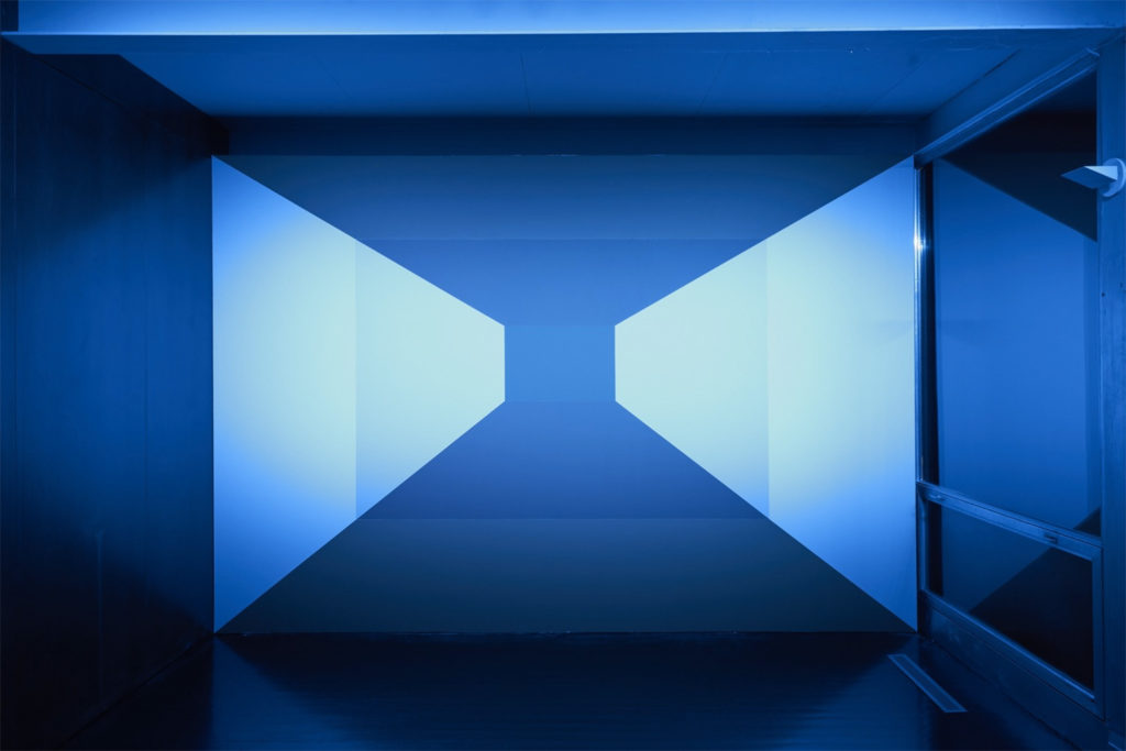 This suggestion never came to fruition but is now expressed inside the home through the glass panes of Luftwerk’s installations – which echo the house’s geometric exterior. As well as a central piece made of brightly coloured squares, the duo has used neon strips, lightboxes and mirrors to transform the various rooms of the home.