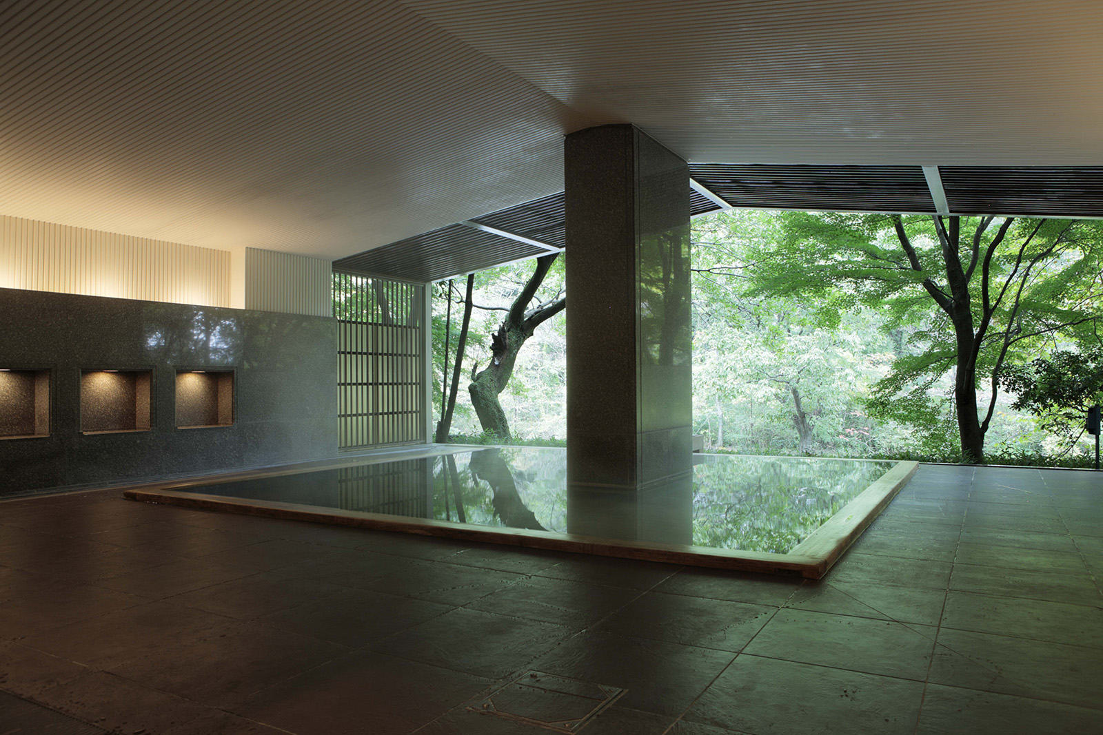 For those without their own private alfresco baths, an invisible-edge hot spring onsen extends from a sheltered spa area into the untamed gardens. After, they can retreat to the reimagined courtyard teahouse called Sawa-chaya, which takes its design cues from teahouses of the Edo period, catering to tourist for more than 1,200 years.