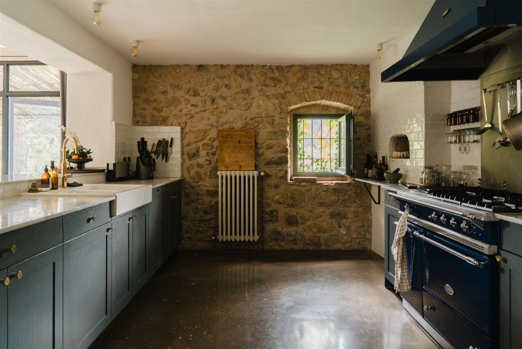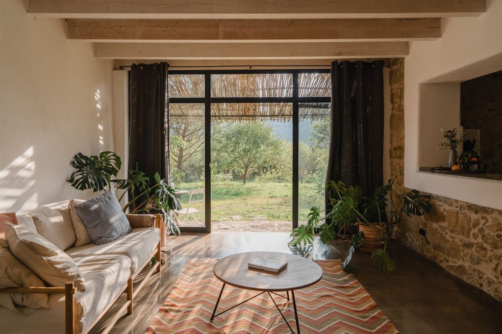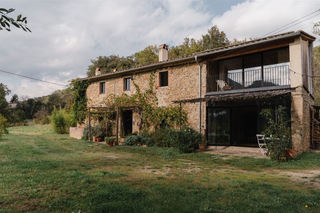 Set among the wooded hills of the Llémena Valley in northeastern Spain, this 19th-century masia on the market for €630,000 has been sensitively restored to recapture the relationship between architecture landscape. The 315sqm farmhouse retains its original stone structure and timber beams, while new interventions — from polished-cement floors to energy-efficient glazing — bring quiet refinement without disturbing its rural rhythm.