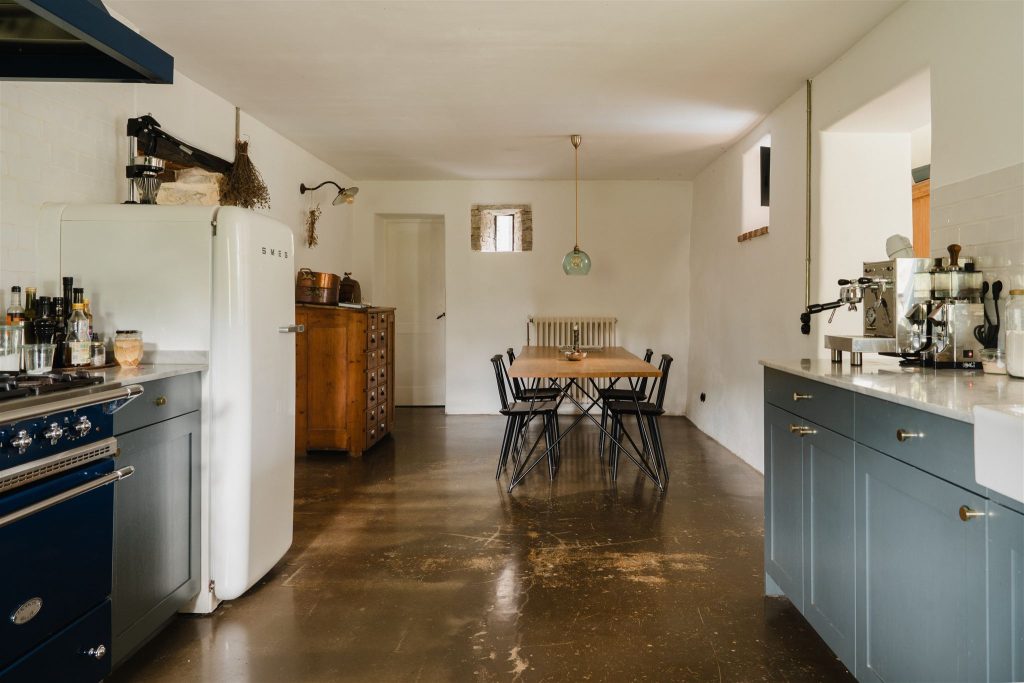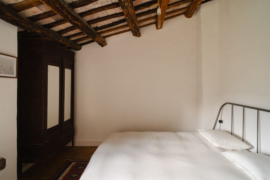 Light enters through the southwest façade, leading into a generous hall and open-plan kitchen with a wood-burning stove and garden views. Upstairs, oak floors and reclaimed tiles shape a calm palette across four bedrooms, including a primary suite with walk-in robe and balcony. An independent one-bedroom annex with a private terrace extends the home’s flexibility for guests or rural tourism.