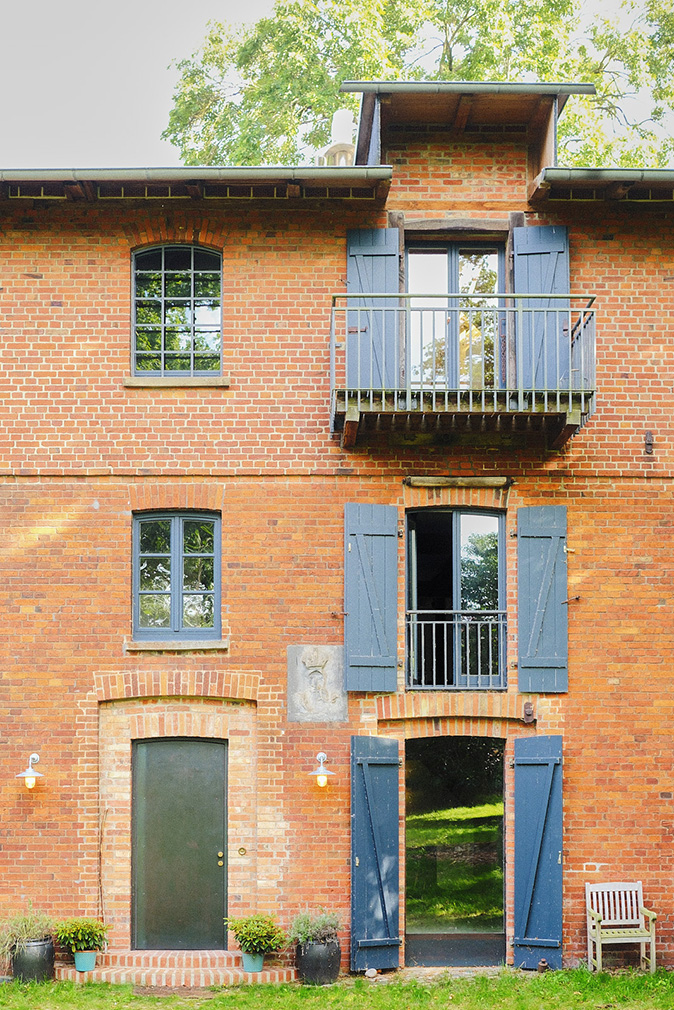 In the Wendland region of northern Germany, around 100km southeast of Hamburg, an 1881 watermill sits beside its own lake, surrounded by meadows, streams and mature trees. The building occupies a long-established agricultural site, where milling activity shaped both the structure and the landscape for centuries before its recent conversion into a private house.