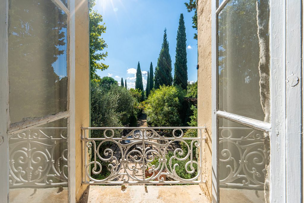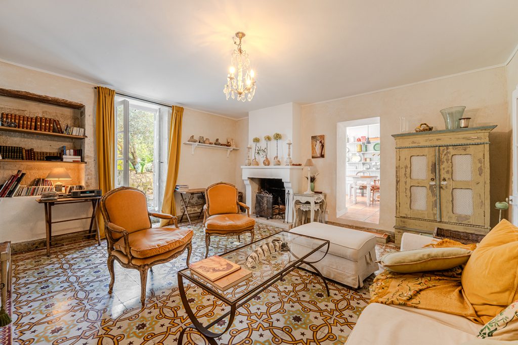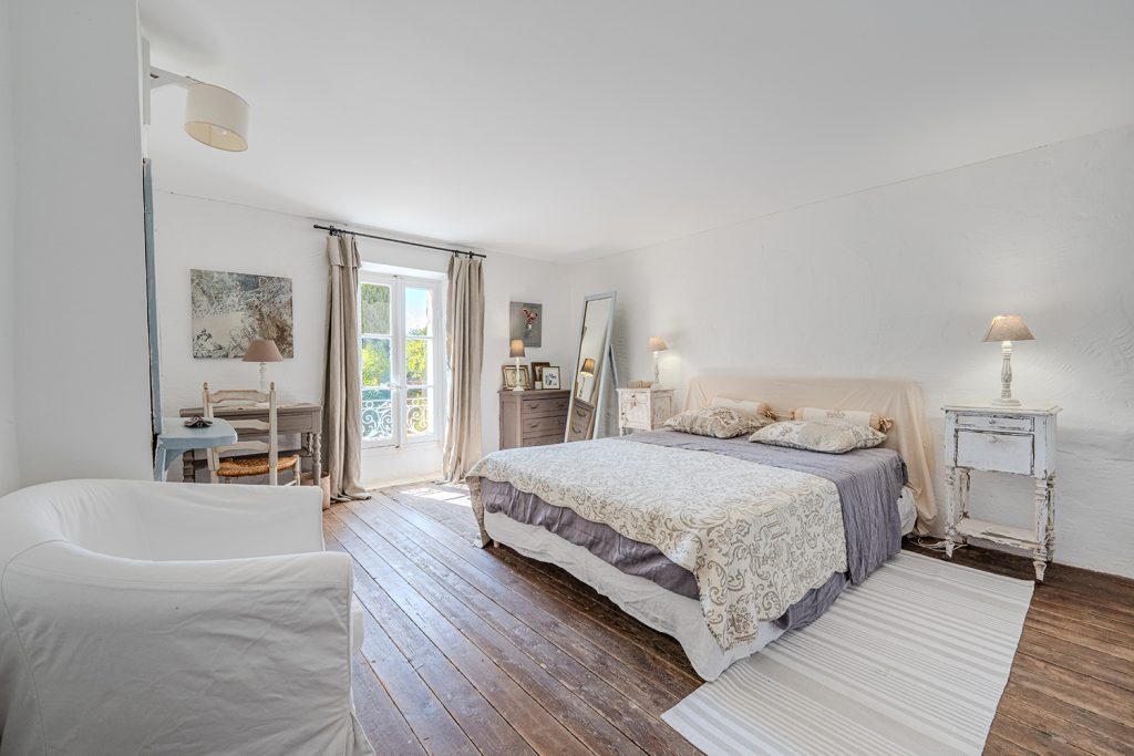 Inside, the generous rooms unfold across two levels: six bedrooms and four bathrooms, with space for a seventh bedroom. High ceilings and thick masonry walls embody traditional Provençal craftsmanship, and sunlight moves easily through the home’s broad windows.