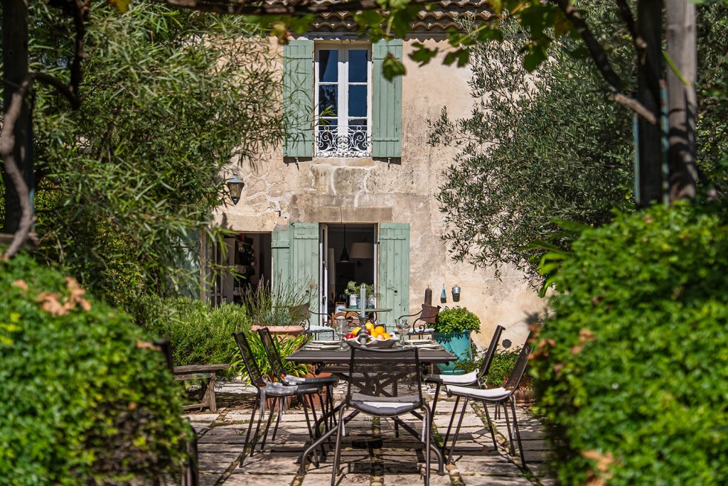 This quintessential Provençal farmhouse sits within a tree-shaded park at the heart of the region, between the villages of Eyragues and Châteaurenard. A restoration of the 316sqm stone architecture preserves its original 19th-century character while introducing modern comforts and scale.