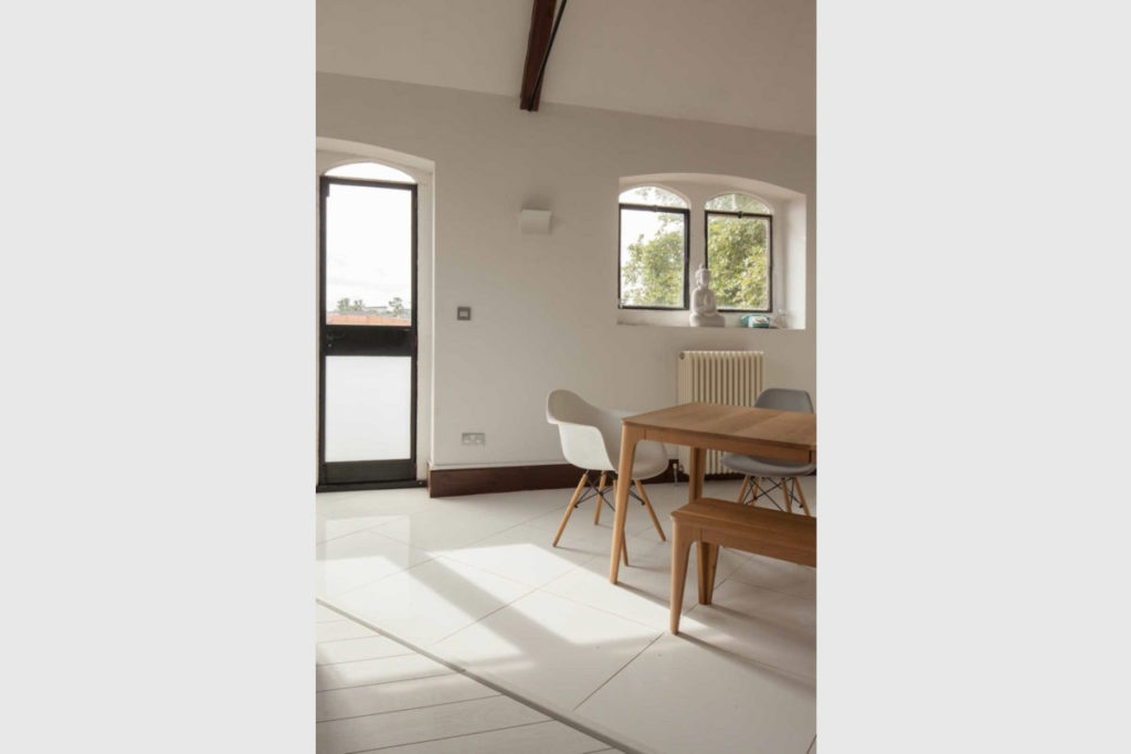 It’s all high ceilings and white wooden floors inside this Victorian school turned apartment in the UK’s Colchester – which overlooks the ruins of St Botolph’s Priory.