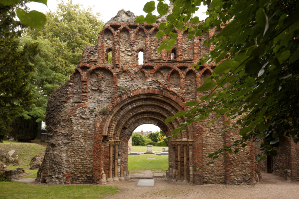 Stand-out elements inside the UK property include the original arched windows which bring light into the apartment, while door open onto a terrace with views of the historic priory ruins below – the real star of the show.