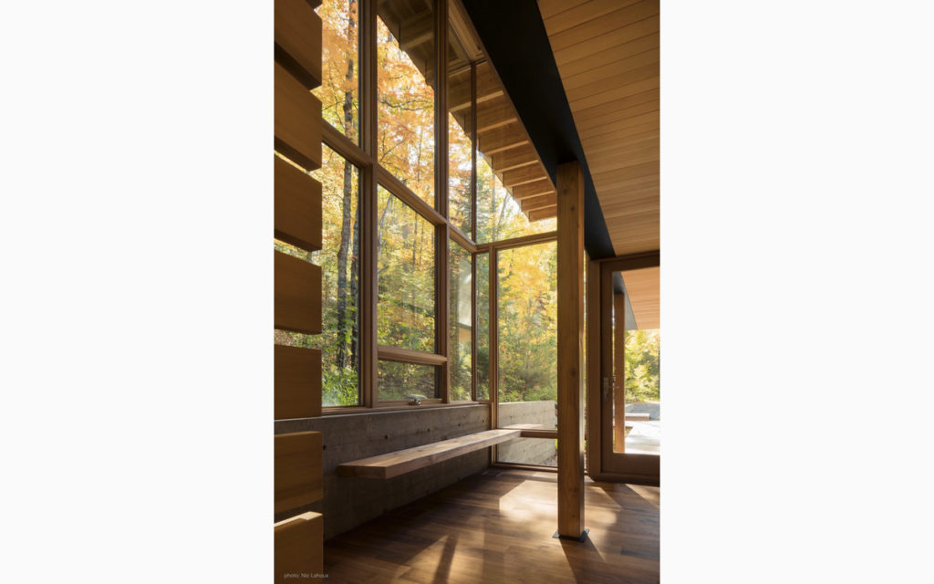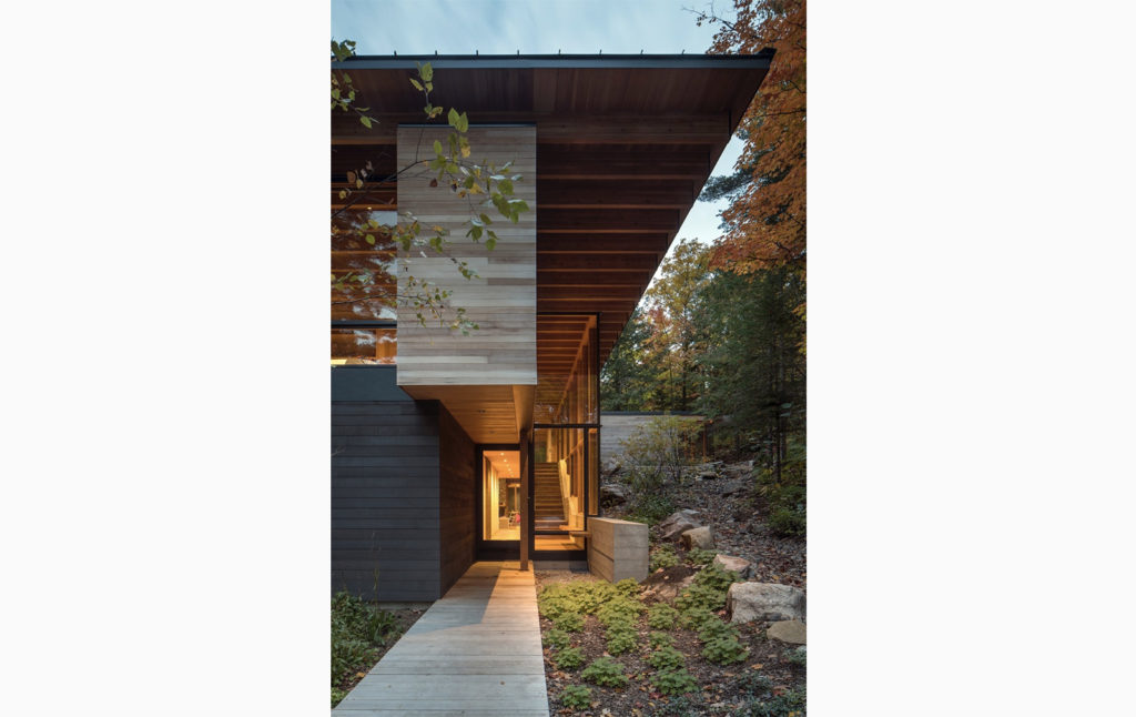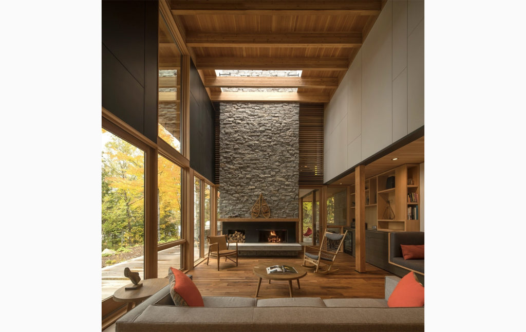 Stretching along the shoreline of Ontario’s Contau Lake, this private woodland getaway is designed to make the most of its spectacular natural setting.