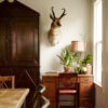 In Harry’s dining room there’s a bespoke L-shaped counter, with handcrafted tables and benches by Concrete Earth. A salvaged 1950s refrigerator takes pride of place in the chef-grade kitchen, while a Victorian-era tobacconist’s case is used for storage and vintage Sheffield lighting fixtures illuminate the dining room.