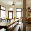 The practice stripped the building back to its stud walls and roof joists, and spent 18 months transforming its ground floor into an open restaurant. They turned the upper level into an apartment for Hagood, one room of which he rents out to guests via Airbnb from $73 per night.