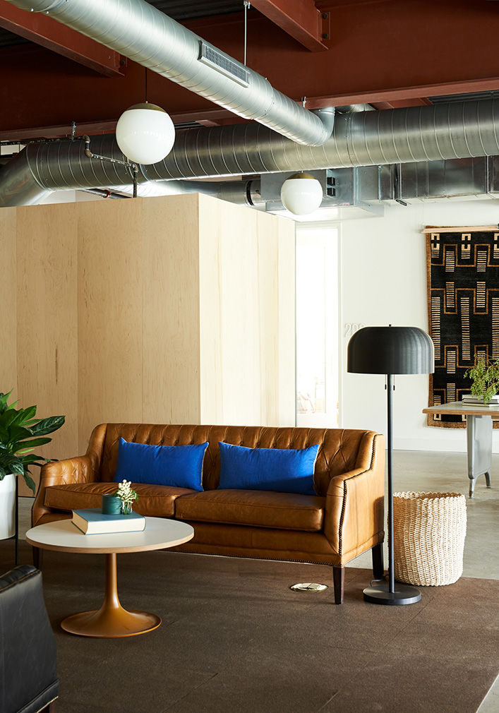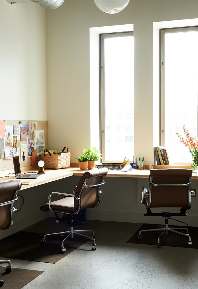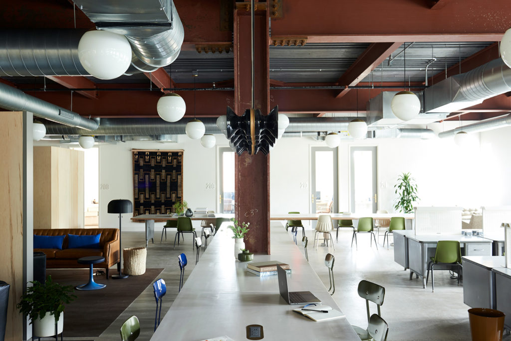 Flex desks start from $125 per month at the Pittsburgh coworking space, and The Detective Building also houses a café and ground-floor flagship store for Schoolhouse’s lighting designs and furniture – many of which are scattered throughout the building.