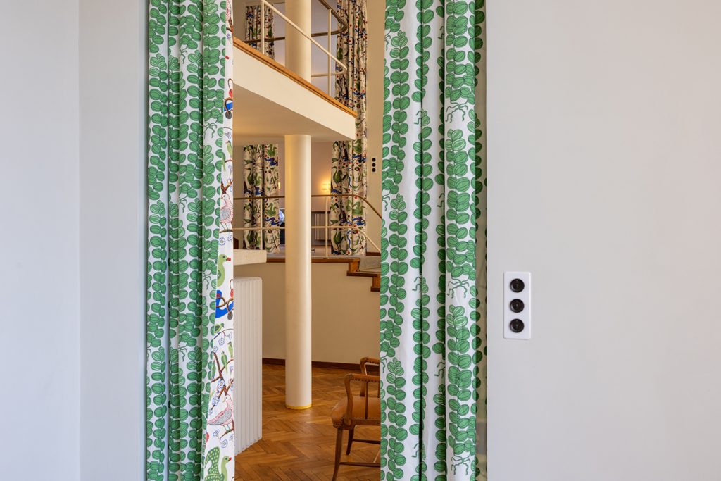 Perhaps most exciting, Prasser and his team have transformed the attic bedrooms with Frank’s archival Svenskt Tenn designs and a palette of greens taken from the original linoleum staircase. Swathed in heritage fabrics, these rooms will support the upcoming artists-in-residence programme and — subject to availability — house visitors interested in experiencing Frank’s special brand of modernist architecture.