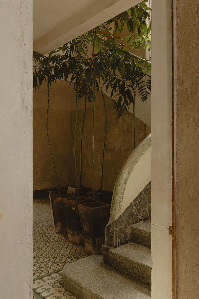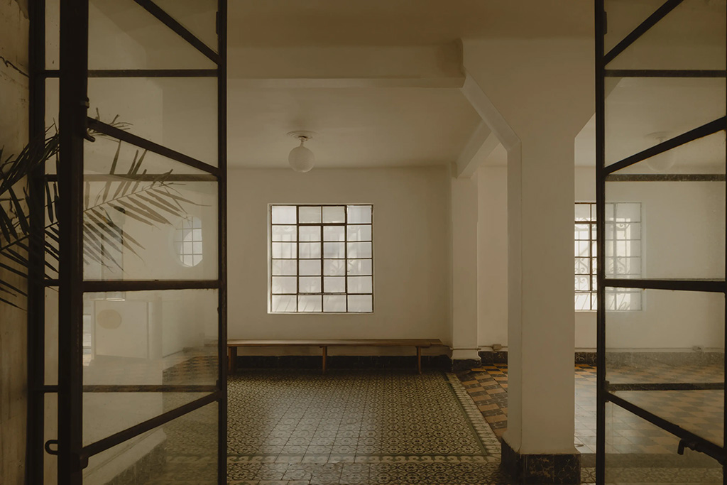Alberto Kalach’s restoration removed later additions and reopened the patios as planted voids within the plan. Circulation now moves directly between courtyard and room, reinstating the building’s spatial rhythm. The ground floor operates as a continuous gallery surface of mosaic tile, where subtle shifts in flooring reveal the former division between commercial and residential uses. Upstairs, former living quarters function as large studios, their scale and natural light aligned with the building’s mixed-use history.