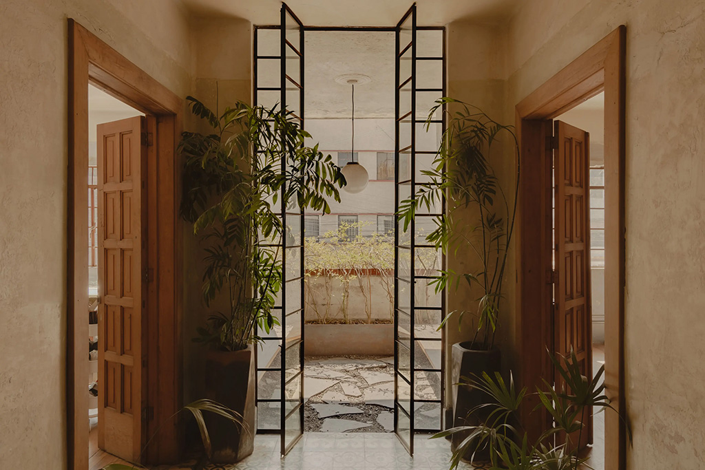 In the genteel neighbourhood of Santa Maria la Ribera, ‘Caleta’ unfolds around a sequence of interior courtyards — a spatial strategy deeply embedded in Mexico City’s domestic architecture. Originally built in the 1930s, the 699sqm structure retains its high ceilings, mosaic floors and restrained art deco geometries, with zigzag motifs and linear ornament set within textured plaster and original finishes.