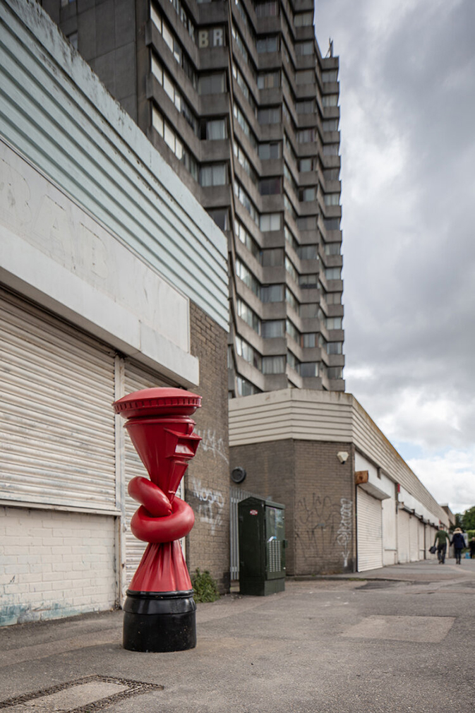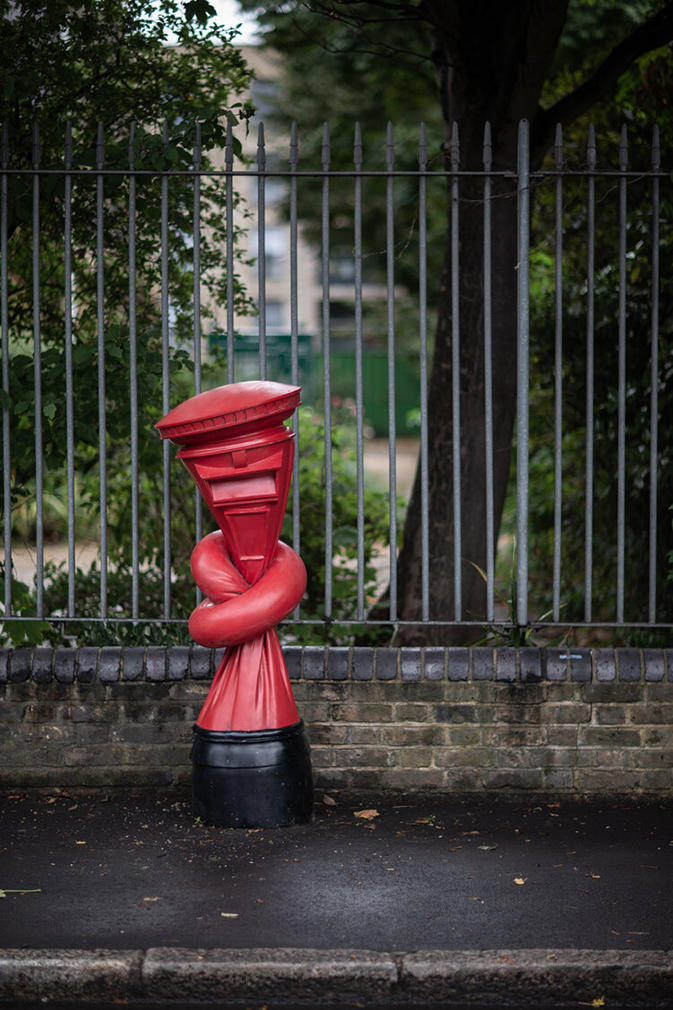 Knotted red post boxes have started popping up on the streets of England’s Margate, Sheffield and London – part of a surreal new series of artworks by artist Alex Chinneck.