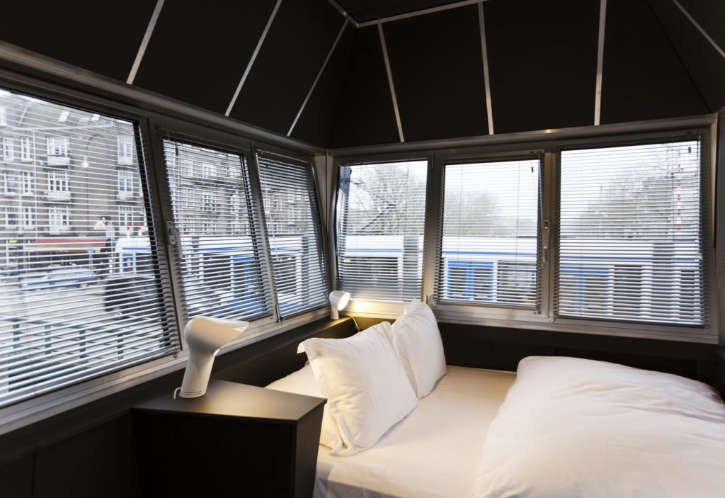 Dutch practice Space&Matter is transforming ‘bridge houses’ along Amsterdam’s canal network into a string of dinky hotel rooms with unparalleled waterside views.