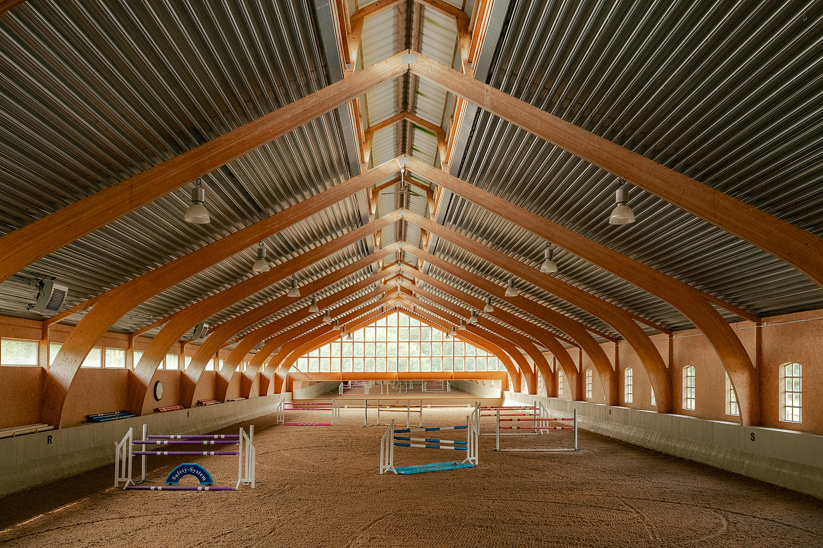The principal residence spans 255sqm with five bedrooms, supported by five additional dwellings and a separate apartment distributed across a 34,827sqm plot. The restoration has introduced modern systems — including ground-source heating — while retaining the character of the original structures. The estate is configured as a working farm, with orchards, paddocks and long riding routes forming part of the landscape. Purpose-built equestrian facilities include three stables housing 22 boxes, an indoor arena and fibresand surfaces, allowing contemporary function to sit comfortably within a historic setting.
