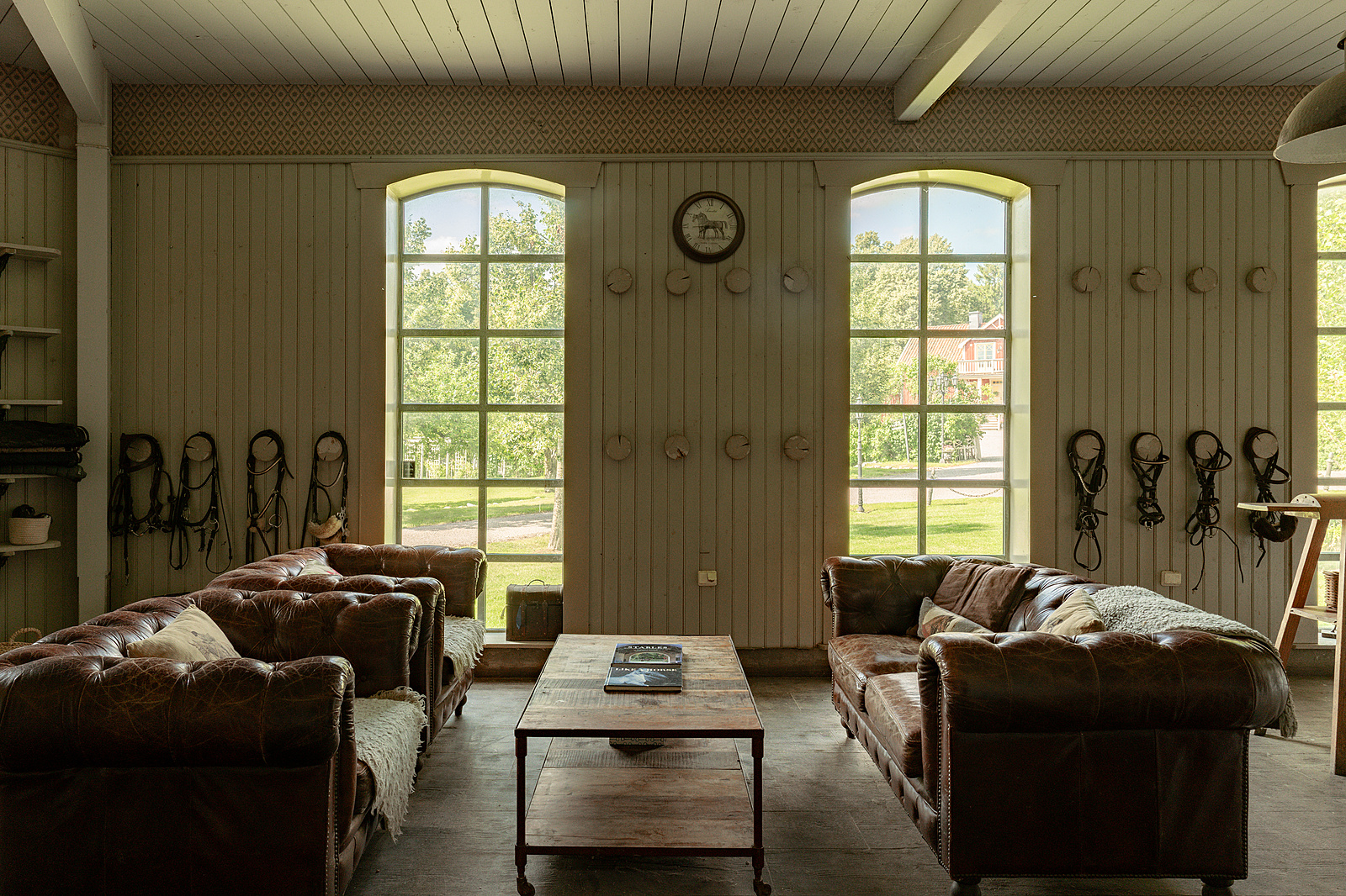 An 18th-century horse farm outside Stockholm has been adapted for reuse as a sprawling residential estate on the shores of Lake Mälaren, between Strängnäs and Eskilstuna. Punctuating acres of waterside farmland, the traditional timber constructions have been shaped over generations and updated for contemporary living. The main house sits at the centre of a wider rural ensemble, its form and materials reflecting the agricultural history of Sörmland and the long relationship between building, land and use. It’s currently listed for 32,000,000 kr with Urban by ESNY.