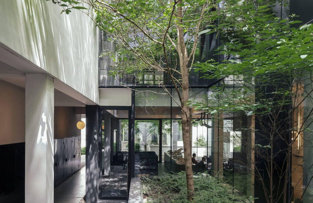 Architectslab oversaw the transformation of the site, which comprises two concrete warehouses and a townhouse which served as the Pyrex offices. The practice removed a damaged piece of the building at the centre of the plot to create a communal courtyard and filling the surrounding structures with apartments and offices.