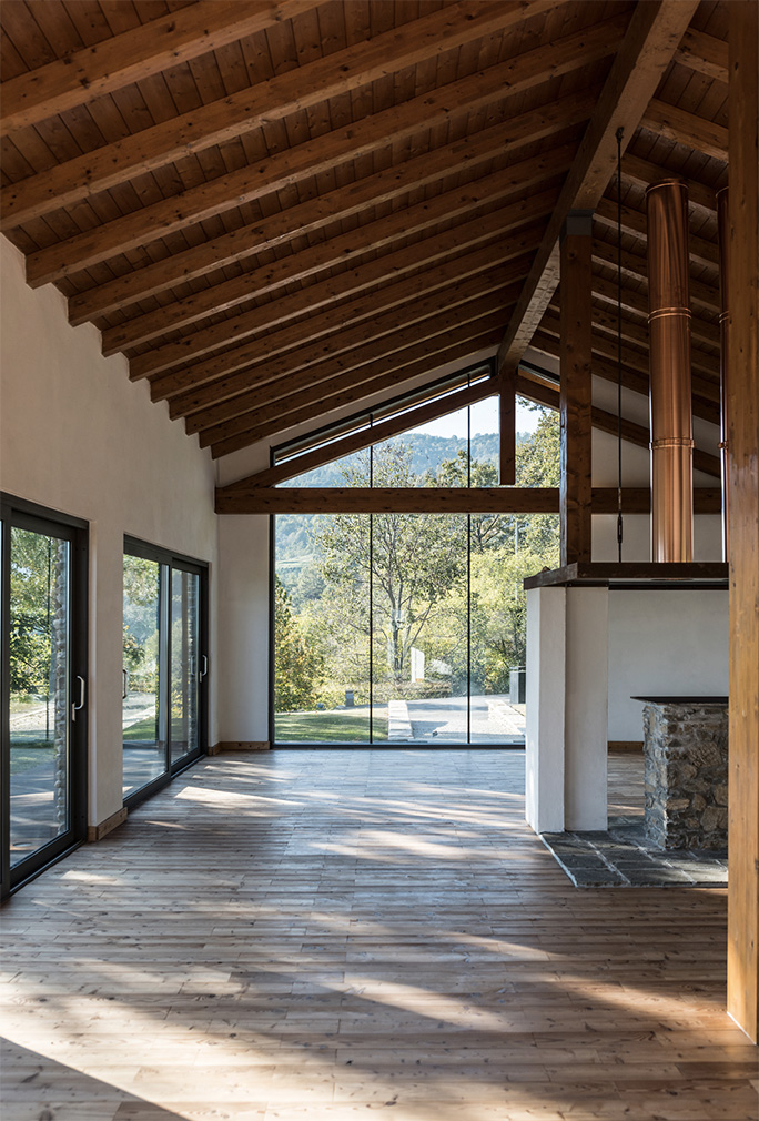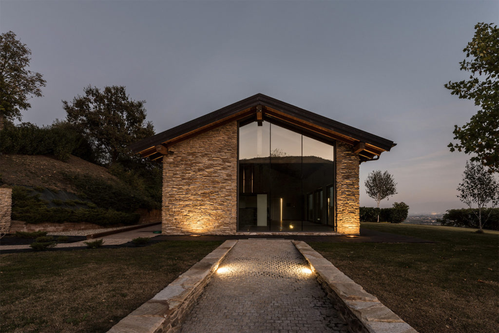 Villa con Vista is the brainchild of designer and developer Antonio Spagnuolo, aka Mr NTS, and it’s designed to maximise views of the Alps while bedding into its rural setting near Piedmont. Local stone has been used for the exterior of the countryside home, while enormous double-height glass windows capture views of the mountains and surrounding hills from every room.