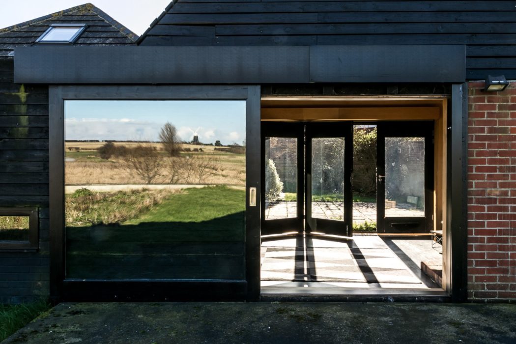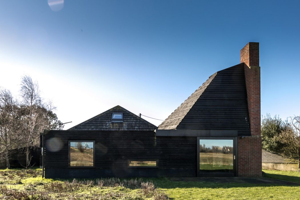 This blackened brick and timber house on England’s Norfolk coast looks like it’s been sliced in half.