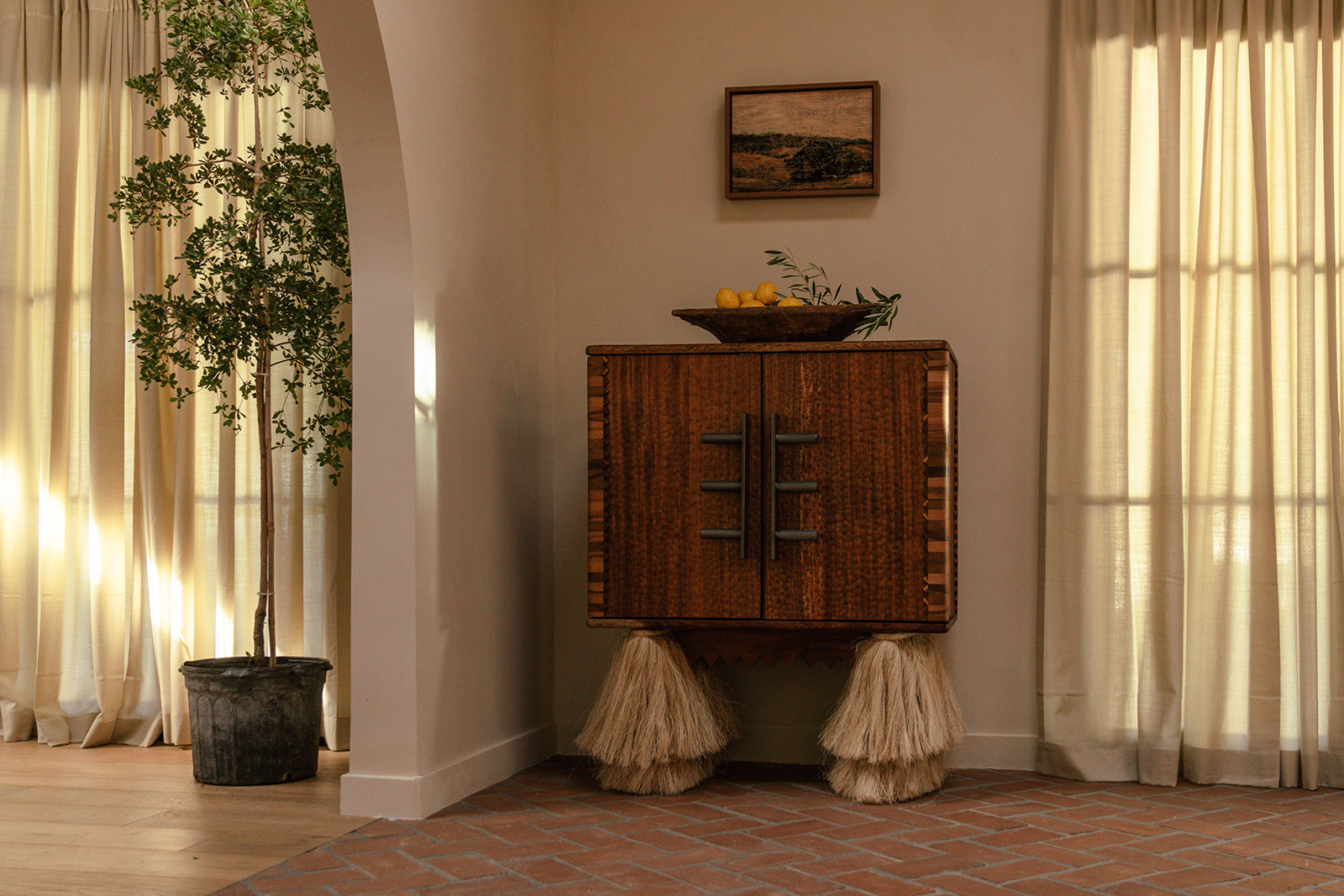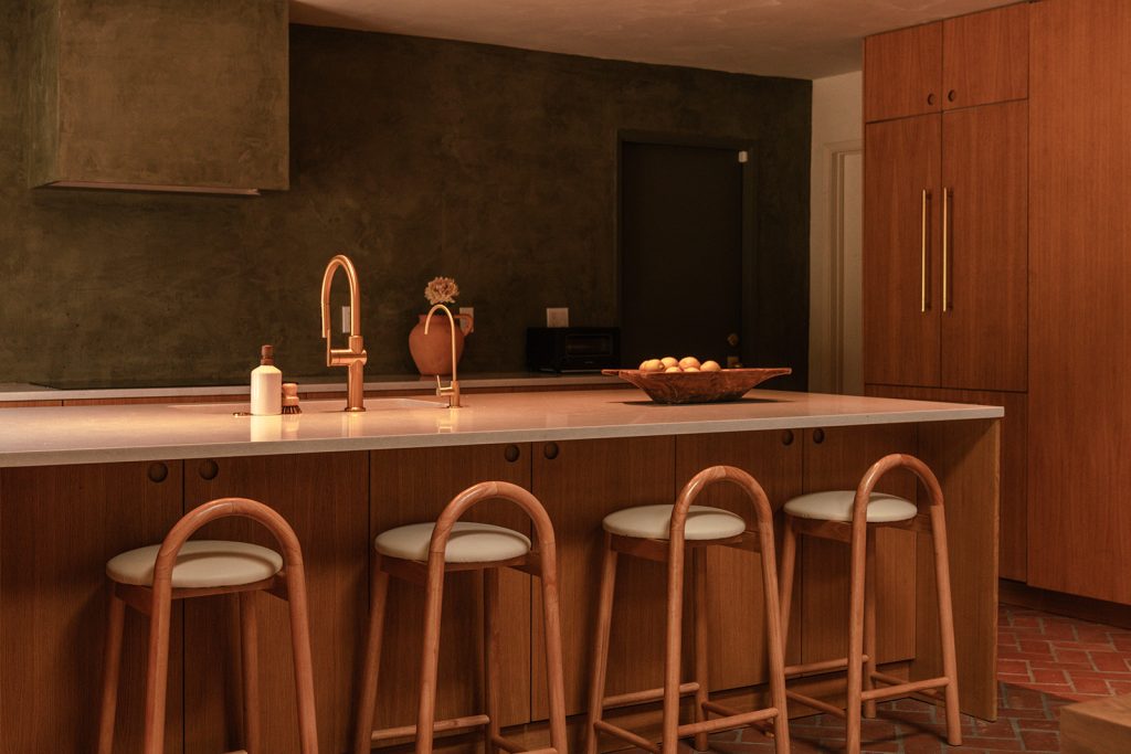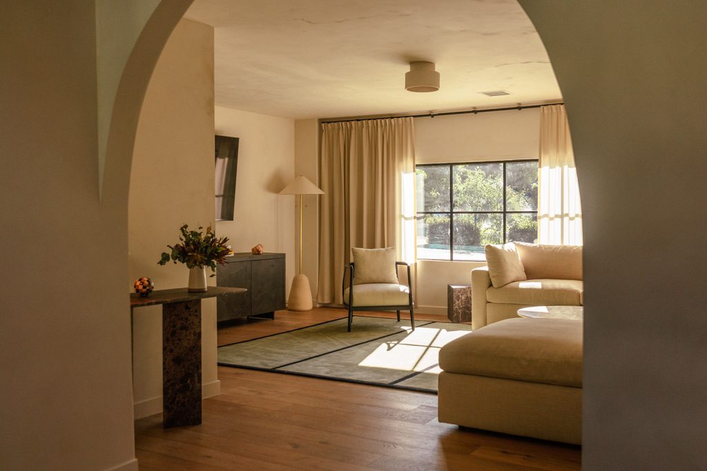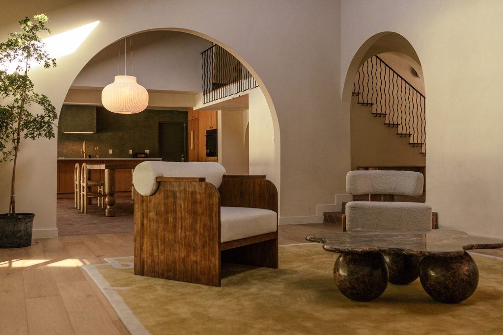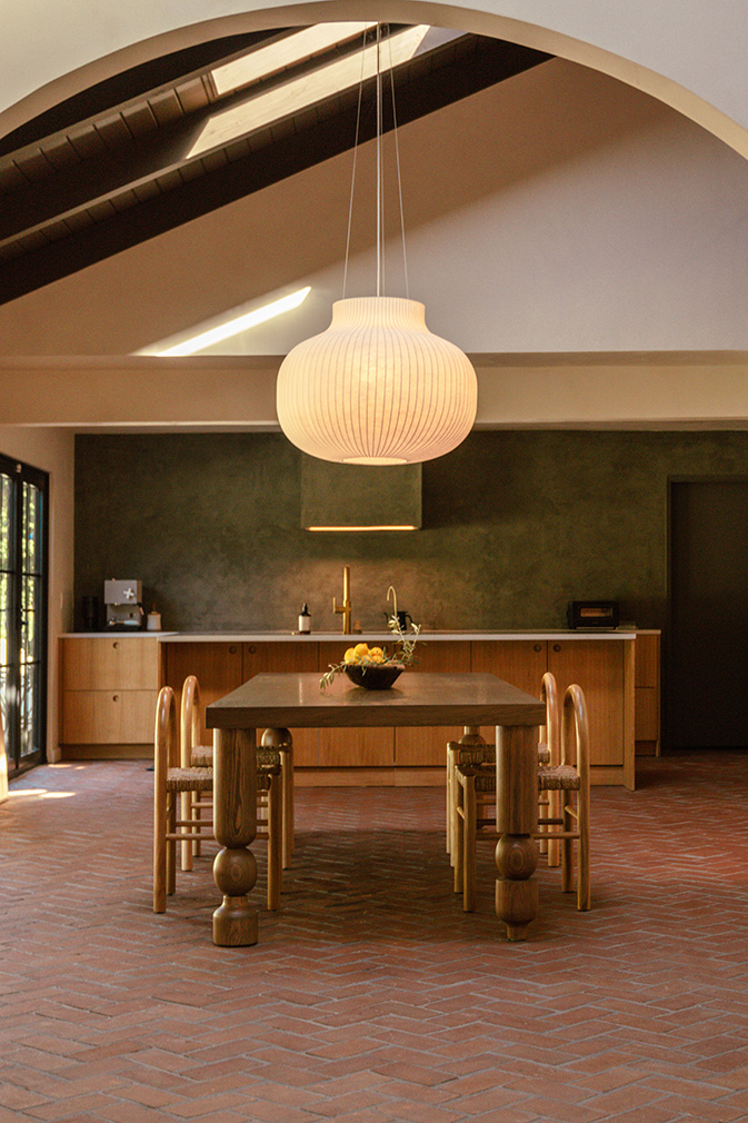 In this So-Cal home, currently listed for $2.2 million, brick flooring sets the tone on entry, carrying movement beneath a sequence of arches that emphasise the vaulted ceilings. The 1962 architecture relies on a new design by Working Holiday Studio that uses proportion and repetition to define how the spaces unfold.