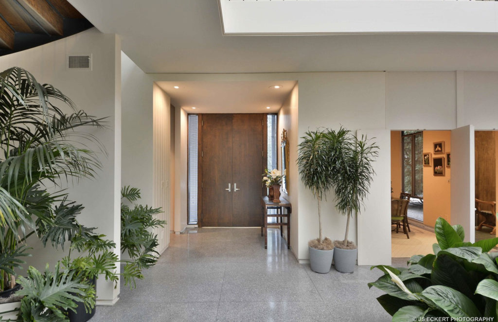 His widow Constance Goldsmith Addington lived at 877 Woodbine Place until 2018, and it’s now for sale for the first time via Griffith Grant & Lackie Realty for $1.995m. It’s been faithfully preserved per Scott Hodgkins’ original vision, down to the kitschy avocado-coloured kitchen and 1960s wallpaper. Terrazzo floors and custom cabinetry can also be found throughout the six-bedroom architect’s home.