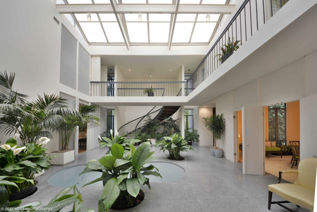 Scott Hodgkins sadly passed away at the age of 32, but he designed the North Shore home – which is 45 mins north of Chicago – in 1965 for his family. The modernist house unfurls around a fully enclosed double-height atrium, complete with pool.