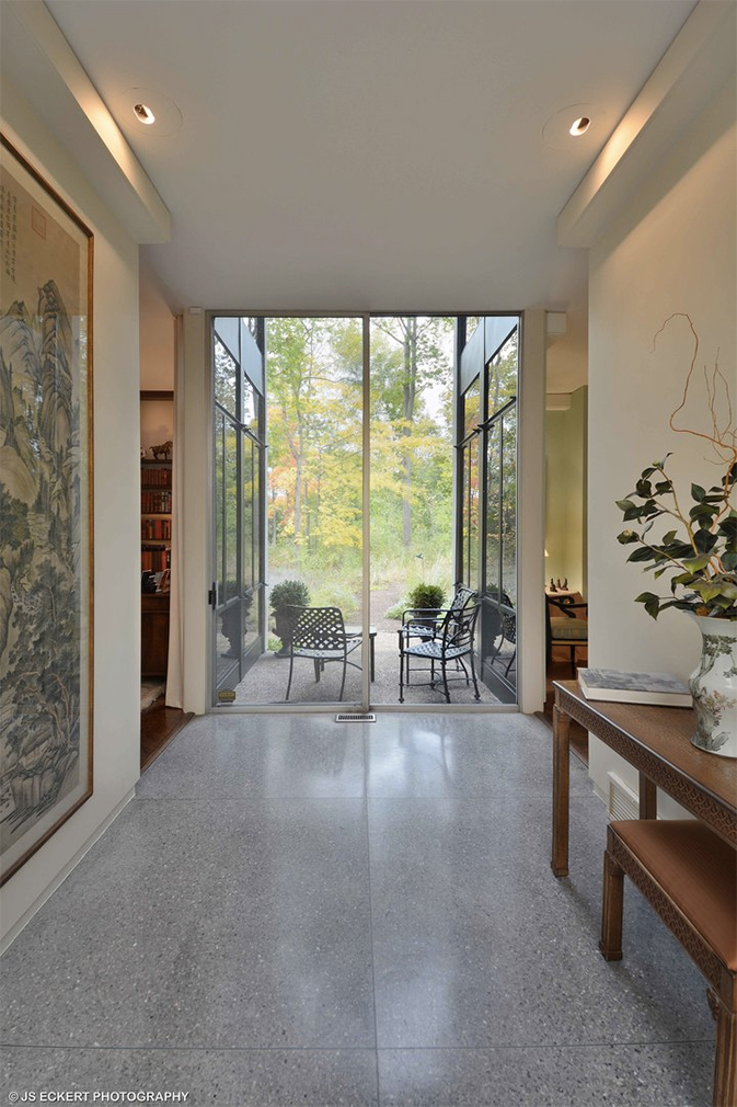 The exterior of this midcentury home near Chicago by architect George Scott Hodgkins belies its light-filled interiors – which boast a massive courtyard at their heart.