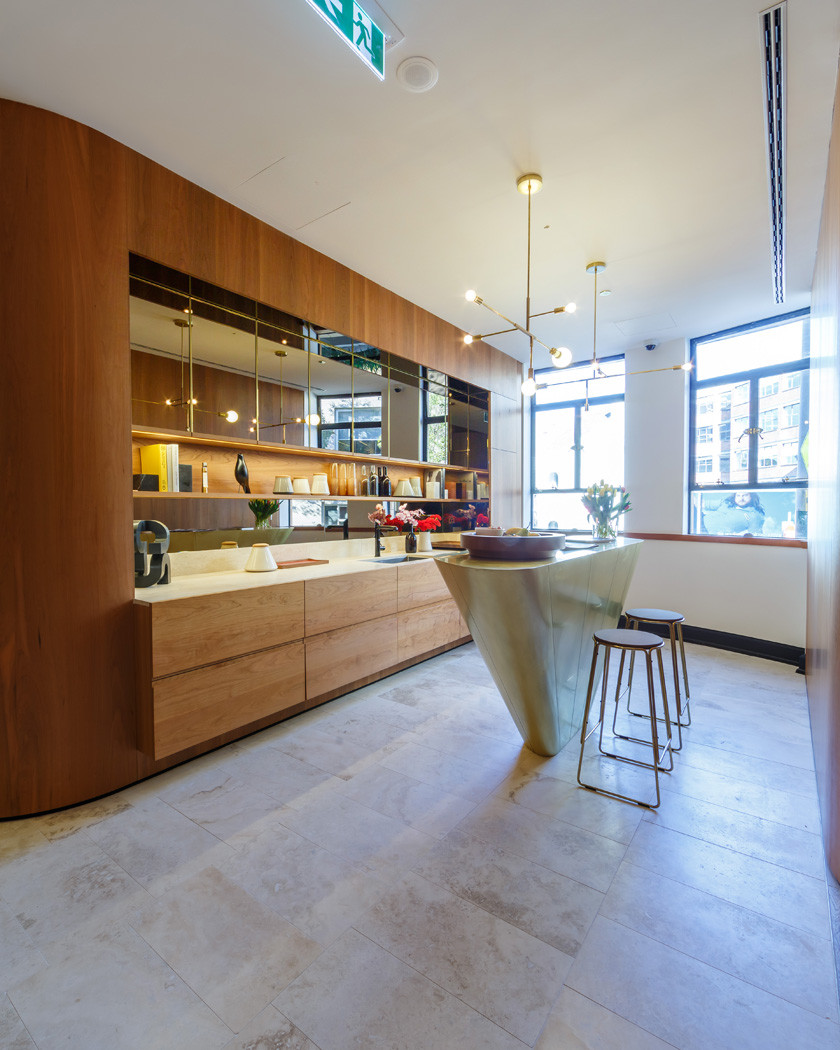 The building’s prominent position within the streetscape also dictated the direction of its interiors. ‘Because the building is in such a visible location and has so many windows, it needed to look good from the outside looking in as well as out,’ Naomi adds. ‘We achieved this by staging the 22 suites on an oblique plane that worked with the natural divide between each window.’