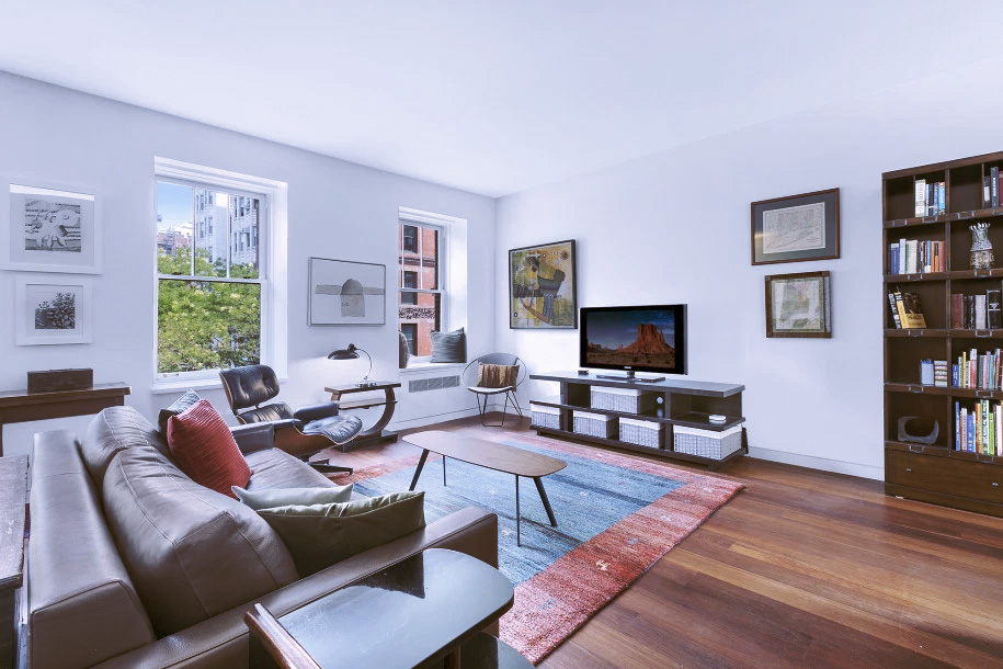 The Manhattan property is located at 26 Gramercy Park South and its living room comes with four tall windows overlooking the park. Marble window sills, Australian Eucalyptus saligna floors and a walnut kitchen complete the space.