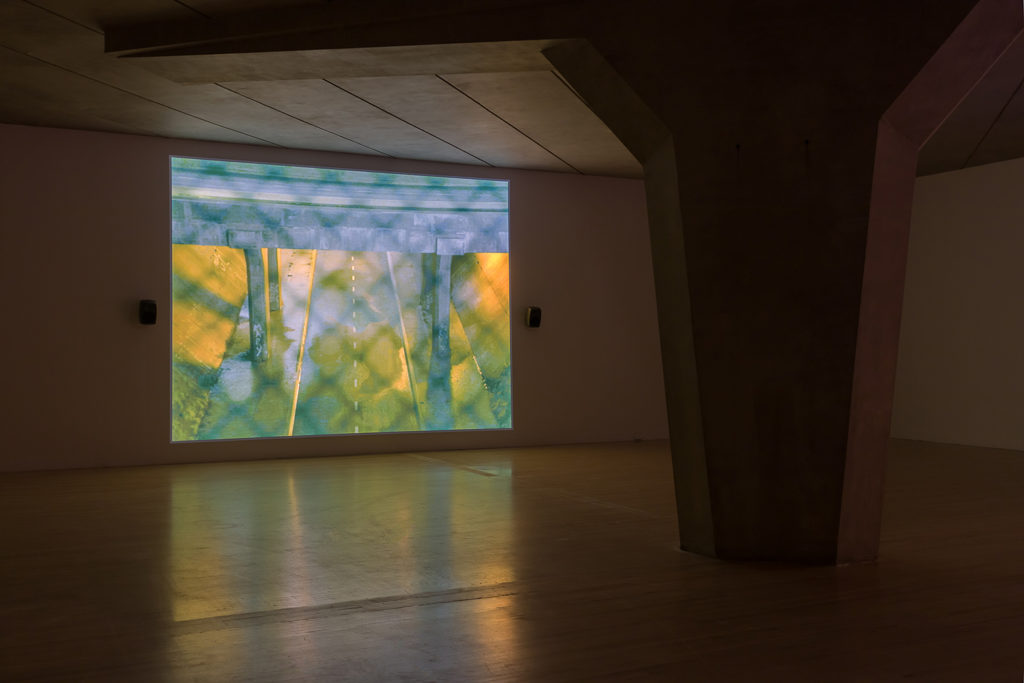 New piece Under Under In tells the story of five teenagers and a bridge haunted by fairies and was shot entirely on iPhone by the artist. It takes on an immersive quality projected into the cavernous cocoon of the concrete bridge.