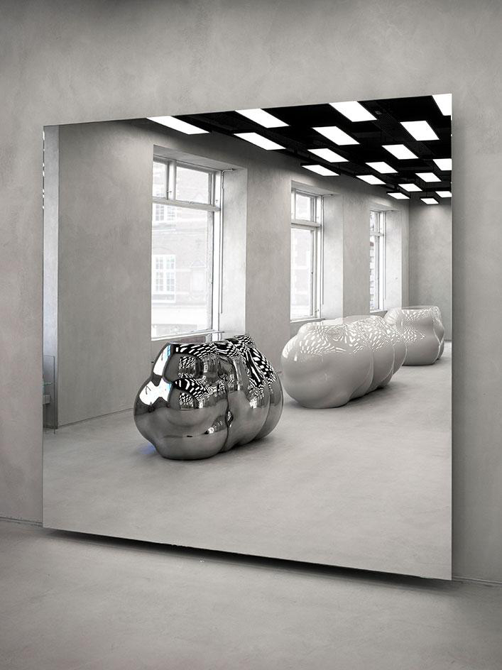 Architect Christian Halleröd and creative director Max Svärdh designed the 270 sqm retail space on Pilestræde, which has monolithic concrete interiors that double as an art gallery. The space is dotted with sculptural artworks by artist Kiri-una Brito Meumann.