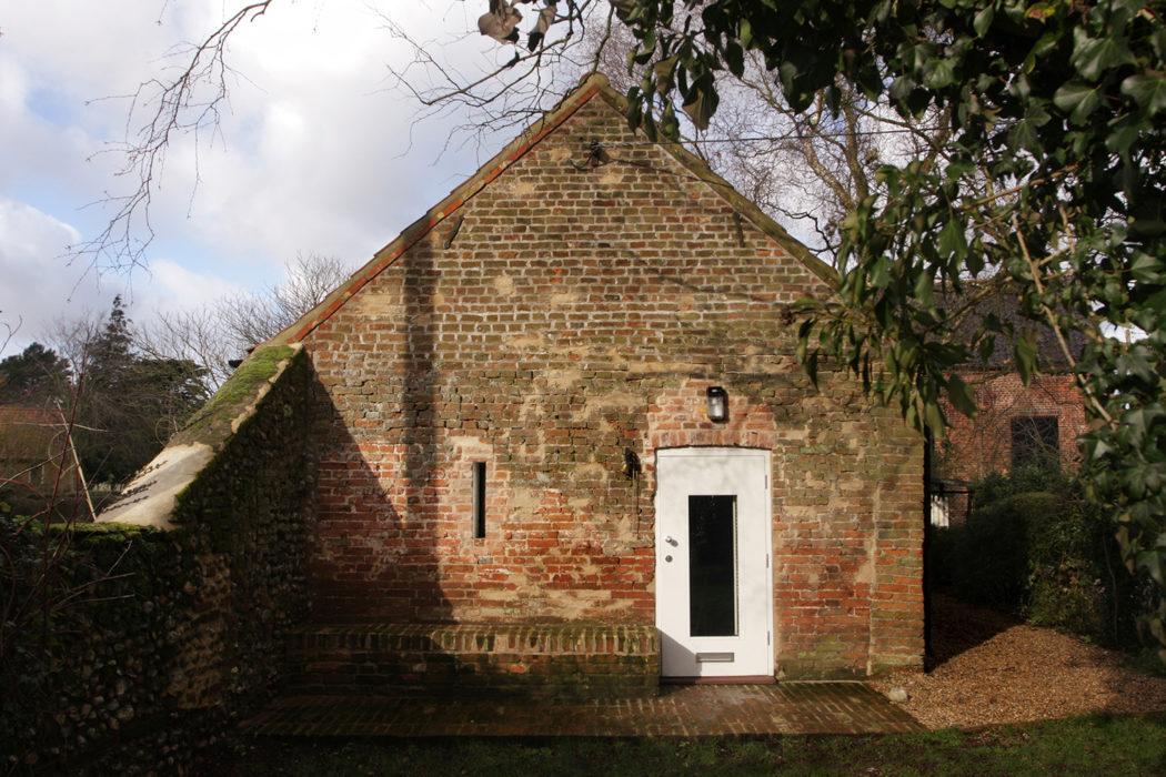 But they don’t even start to give away the extent of the refurbishment of Thursford Barn (which you can try before you buy, starting from £695 a week). Lynch Architects’ construction of a new, independent timber frame within the old walls has allowed for the internal exposure of the original rubble, painted white to match the main element of the new construction: a floor-to-ceiling theatre wall.