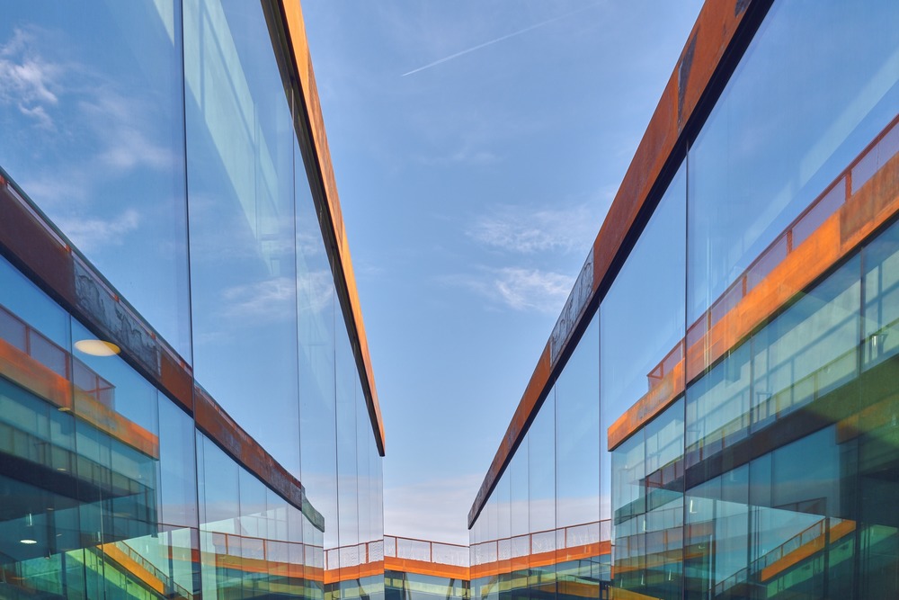 BIG’s glass-fronted, 2,800 sq m design features a sloping grass-covered roof which helps it hunker down among the dunes. Pathways burrow through the hillside leading to the museum’s new courtyard, which allows access to four subterranean gallery spaces.