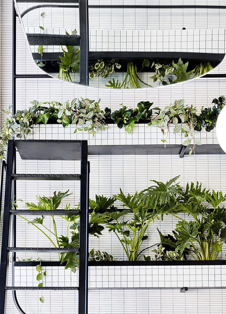 Plants sprout from overhead tiled planters. ‘Naim is designed with love for Syria,’ says Hakim. ‘It is an interior tinged with nostalgia and hope.’