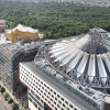 The striking glass roof of Helmut Jahn’s light-flooded Sony Centre is one of the primary symbols of the post-Wall regeneration of Potsdamer Platz. Making extensive use of steel and glass, the entire structure is set on the former grounds of the Grand Hotel Esplanade of which only the famous Kaisersaal remains, itself encased in protective glass as historical curio and tourist attraction.