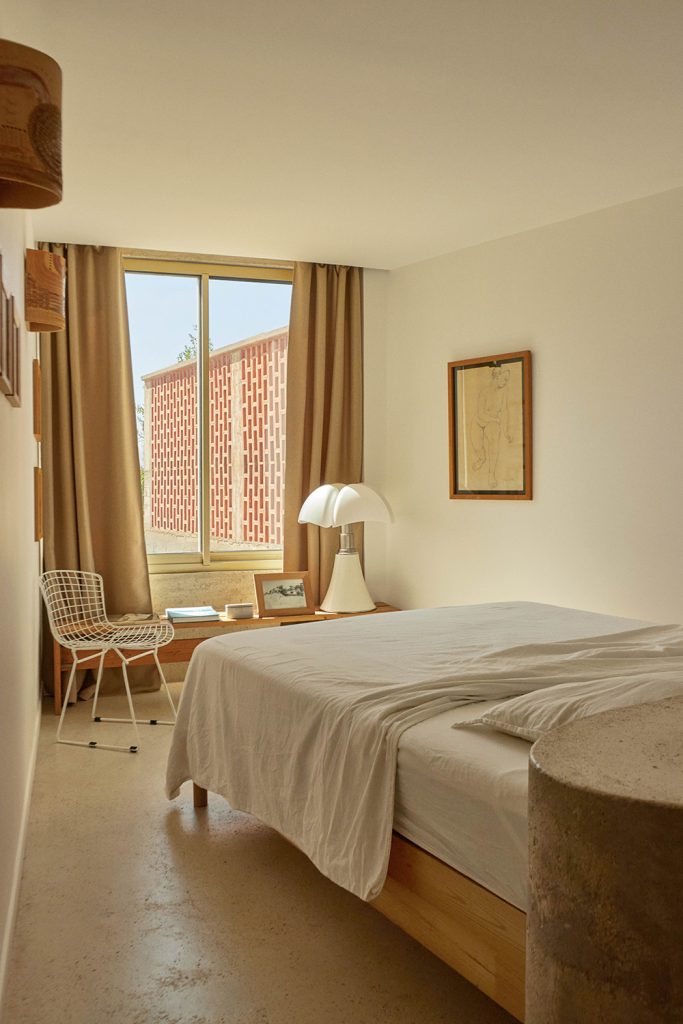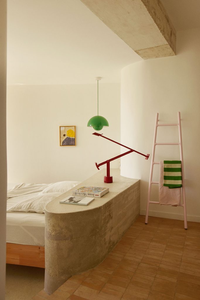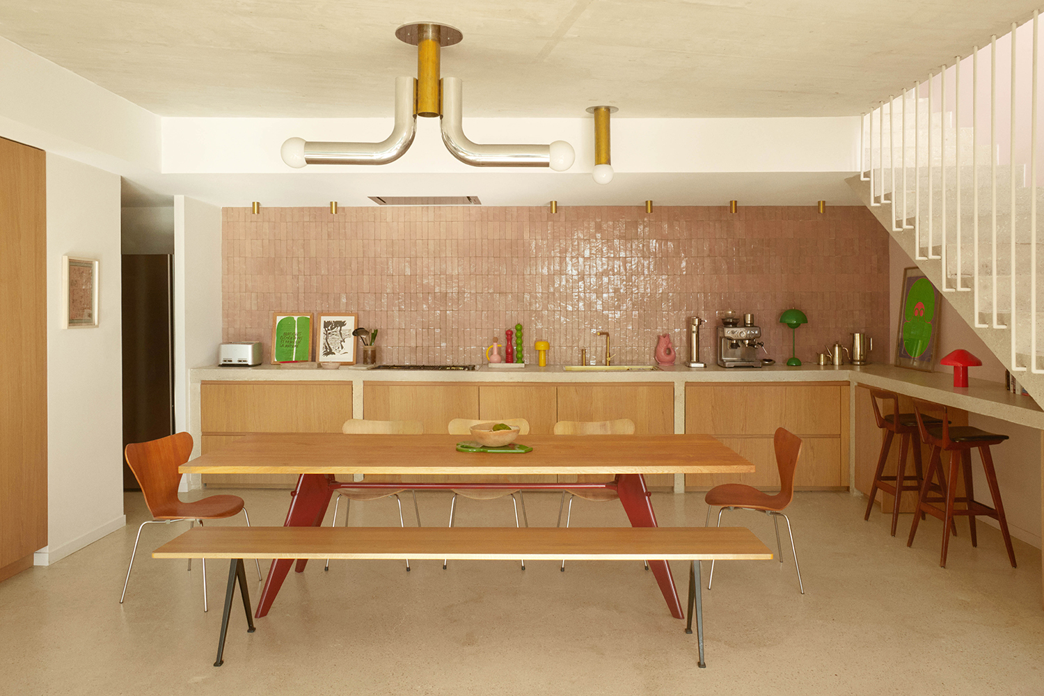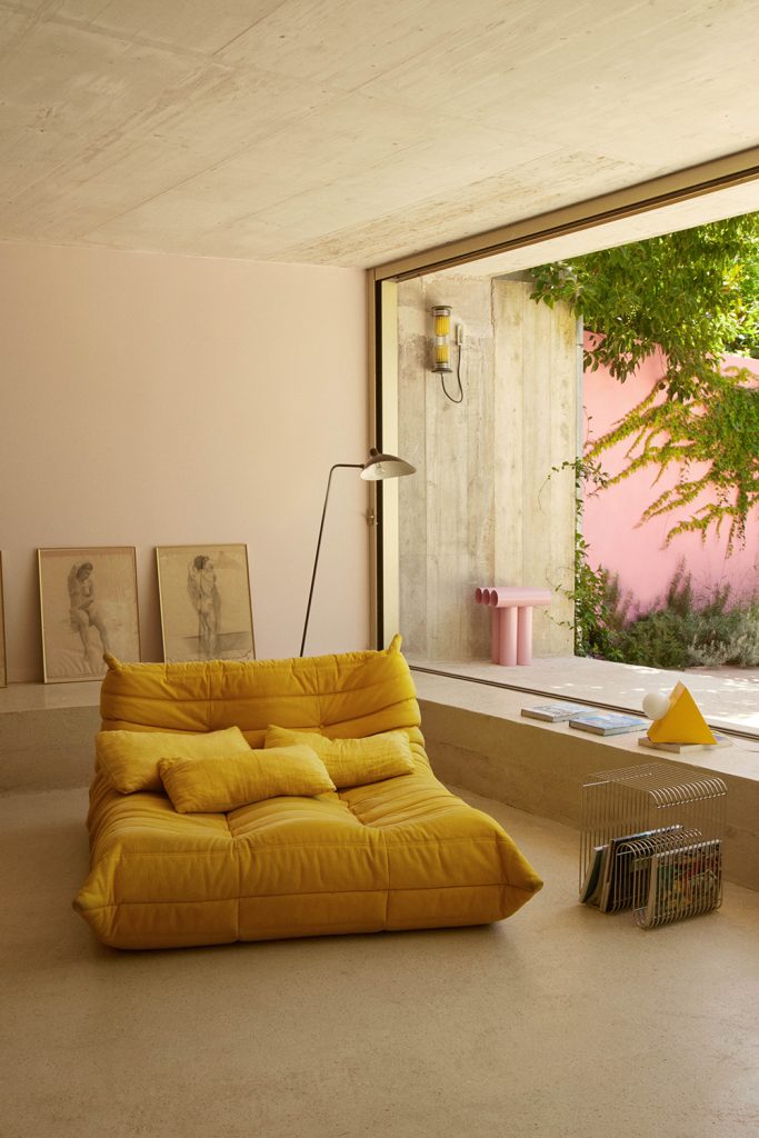 The living areas sit lower in the plan, opening wide to a courtyard framed in pink render, green zelliges and a still pool that acts as a mirror to the surrounding greenery. It’s a pocket of near-tropical colour that sharpens the home’s material expression and anchors it in Marseille’s coastal light.